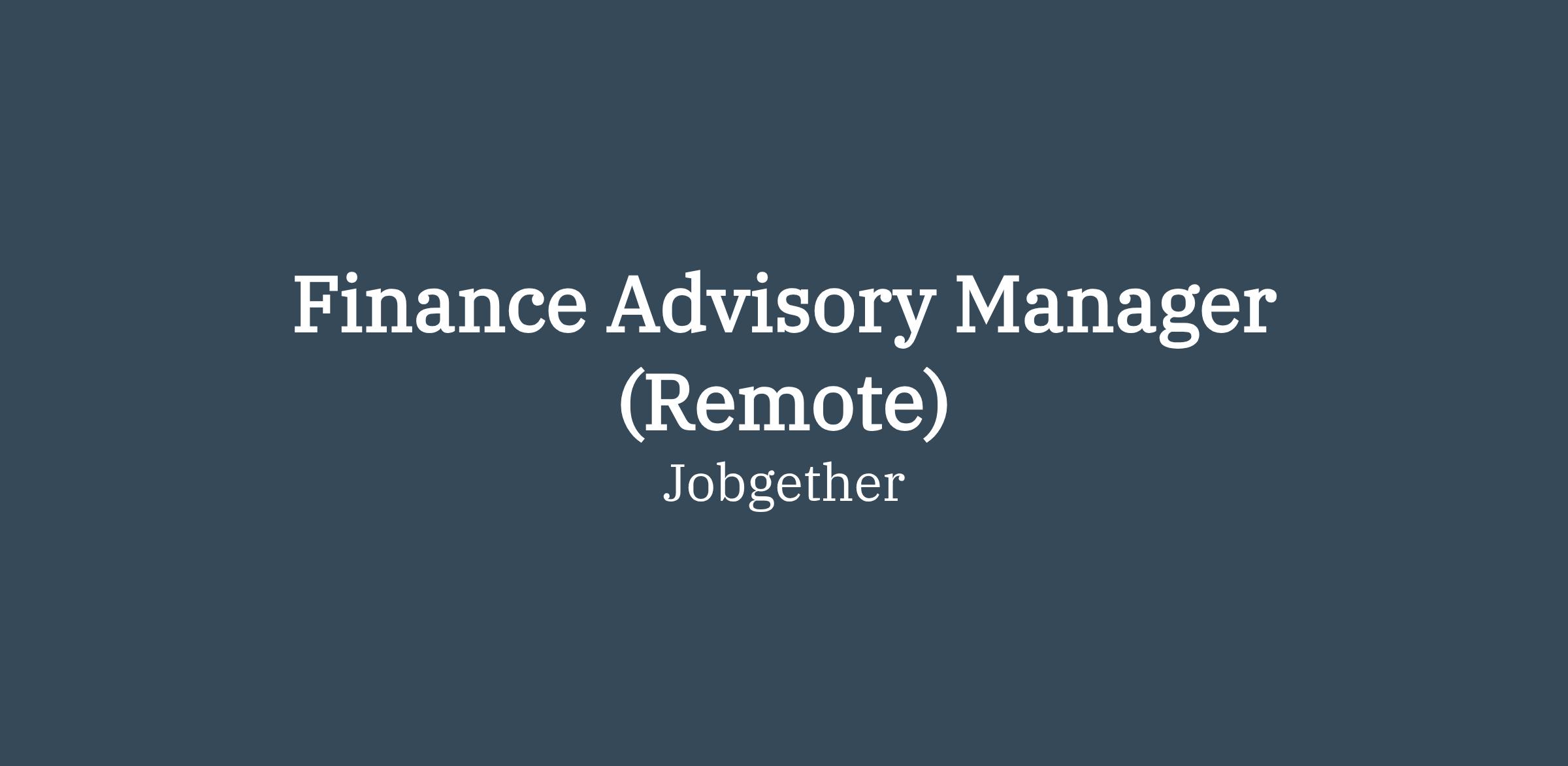 Finance Advisory Manager (Remote)