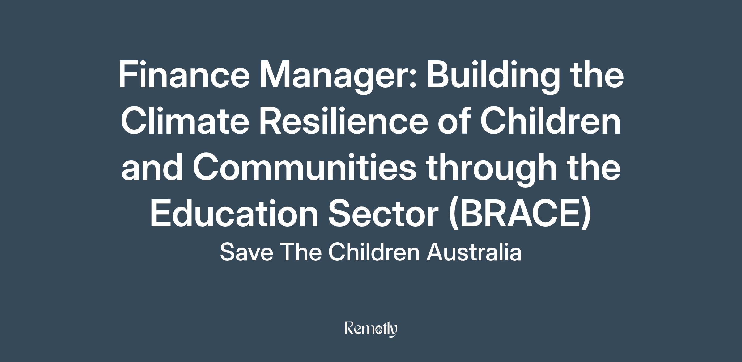 The Finance Manager: Building the Climate Resilience of Children and Communities through the Education Sector (BRACE) plays an important role in delivering on our vision of a better world for children.
