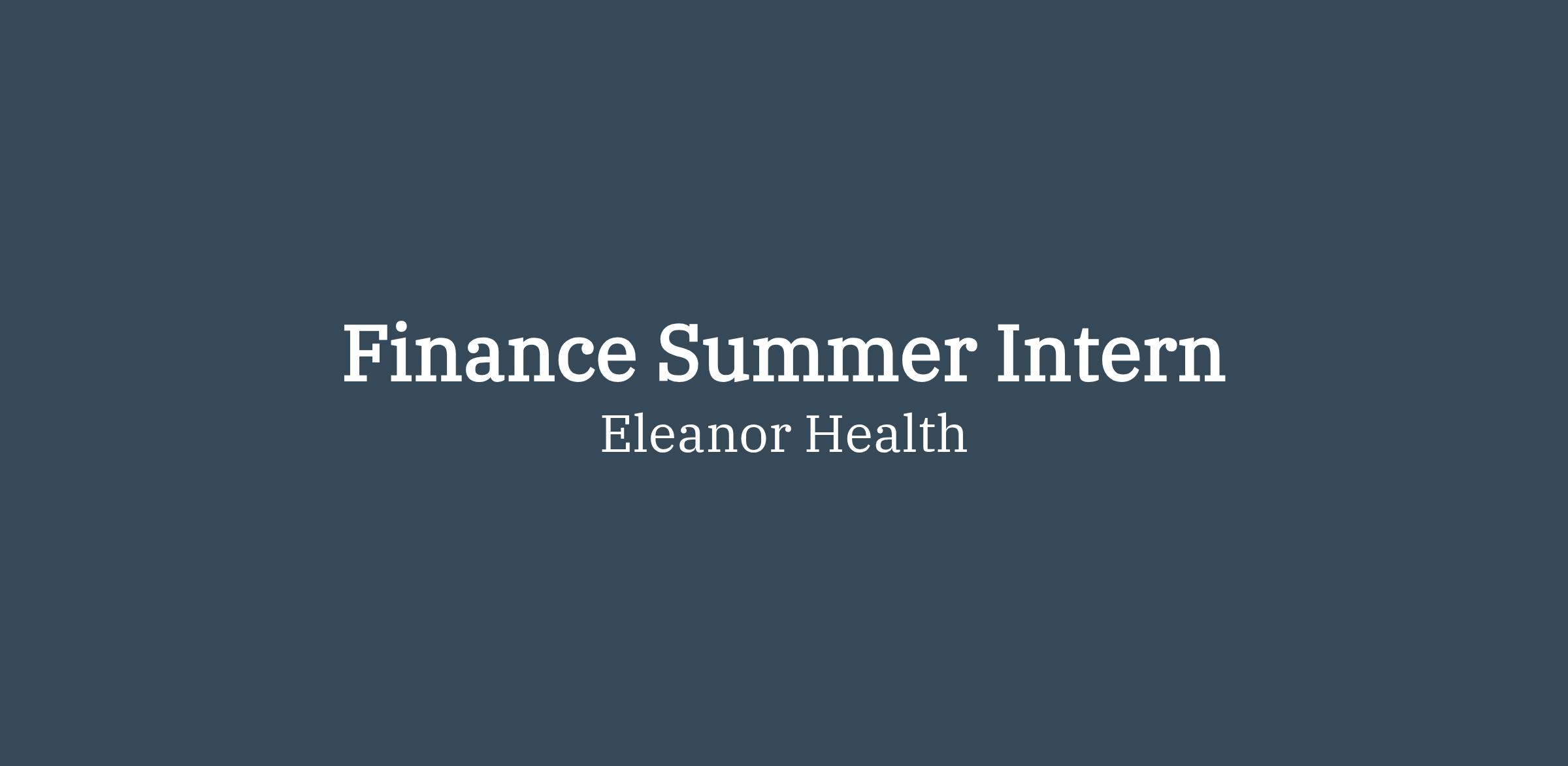 The Finance Summer Intern will support the Eleanor Health Finance team across areas such as financial planning & analysis (FP&A), accounting, and financial operations. This internship offers hands-on experience working on real business initiatives, exposure to corporate finance processes, and collaboration with experienced finance professionals and leadership development program associates directly supporting the Vice President of Finance and Analytics.