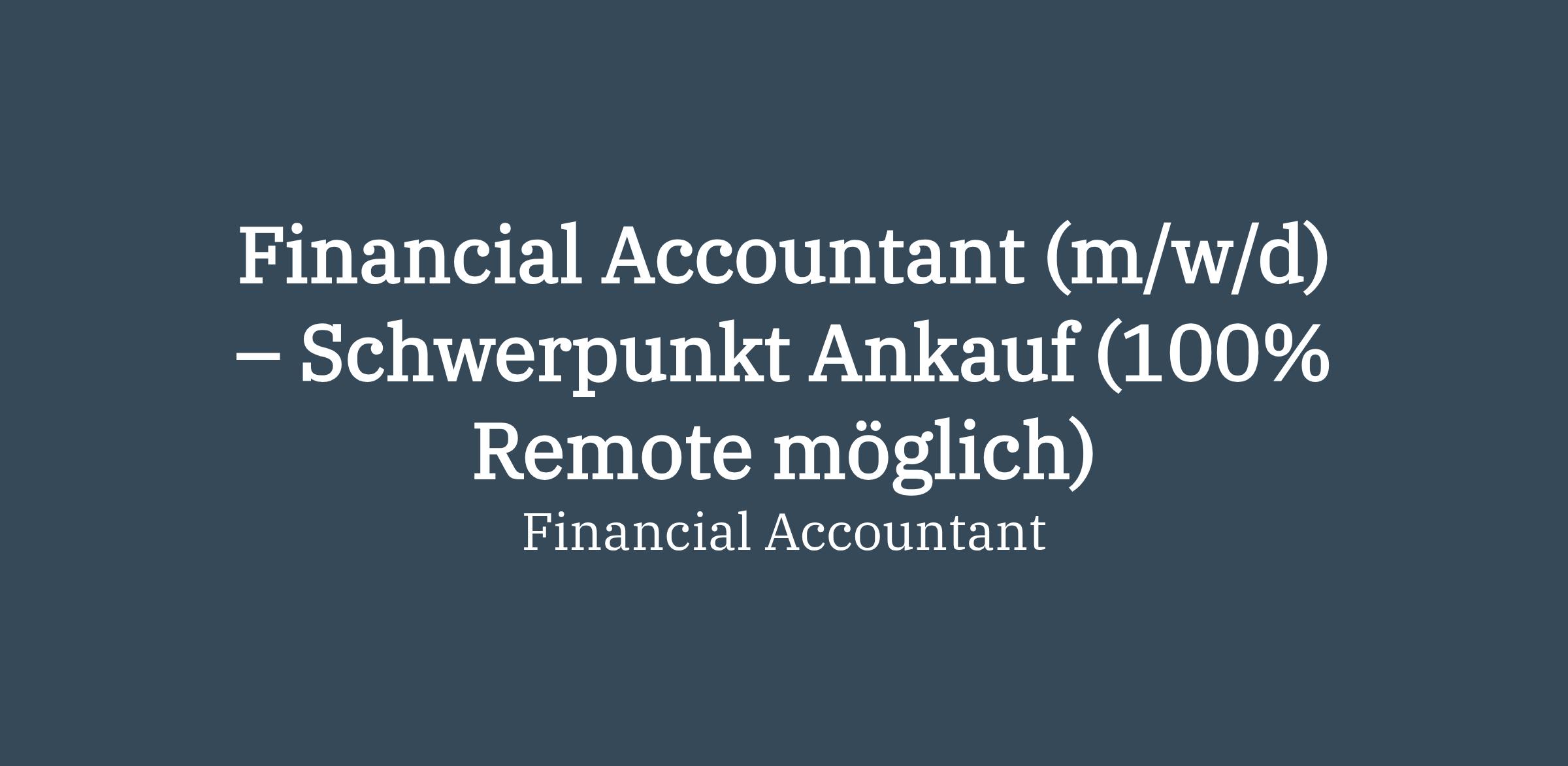 Financial Accountant (m/w/d) – Schwerpunkt Ankauf (100% Remote möglich)