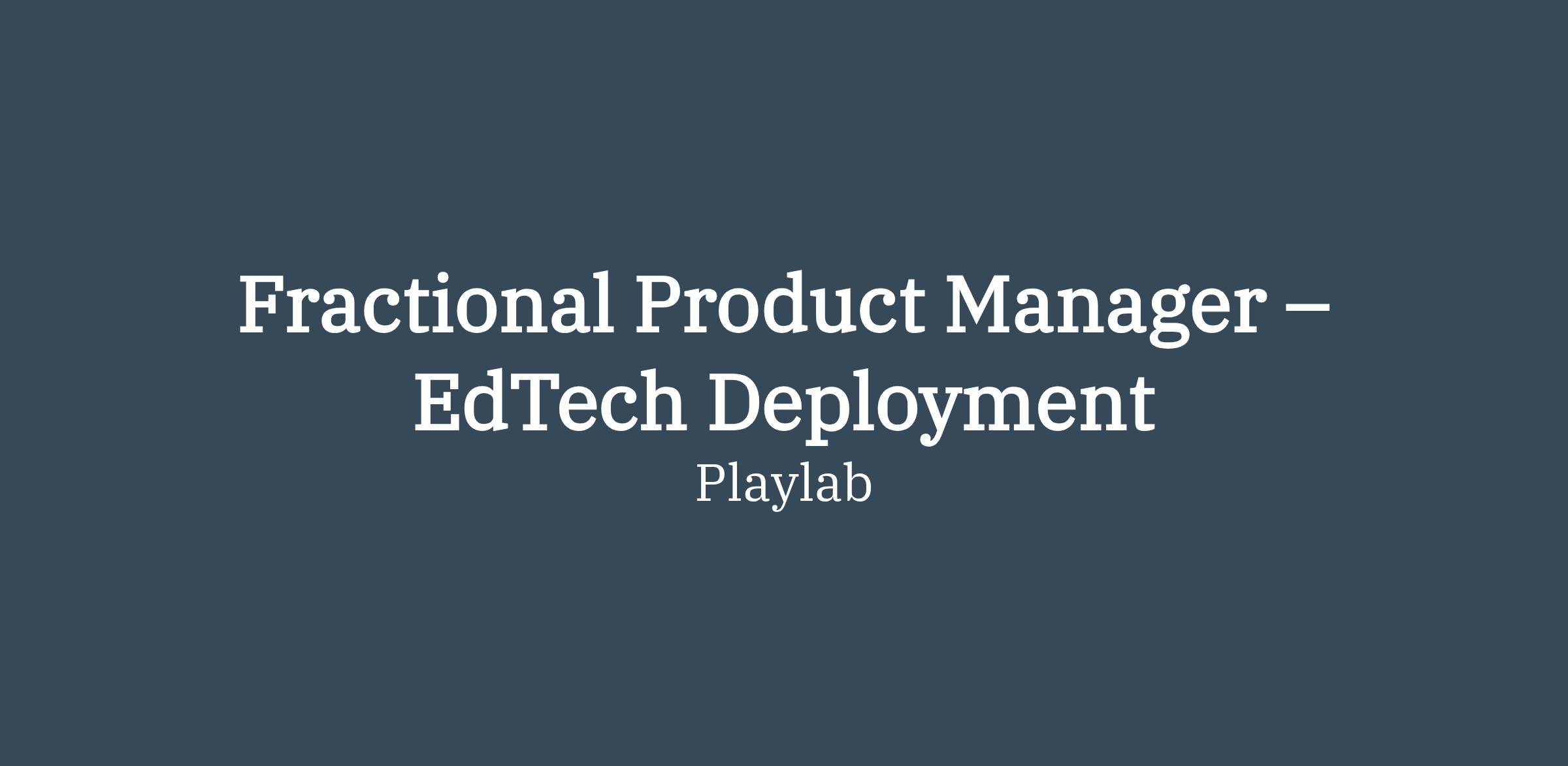 We're hiring a Fractional Product Manager to own a focused, high-impact scope: making Playlab work for institutions at scale. This means designing how roster data flows in and out of Playlab, defining a domain model that serves both organizations and individual users, and specifying the admin controls that institutions need to deploy with confidence.