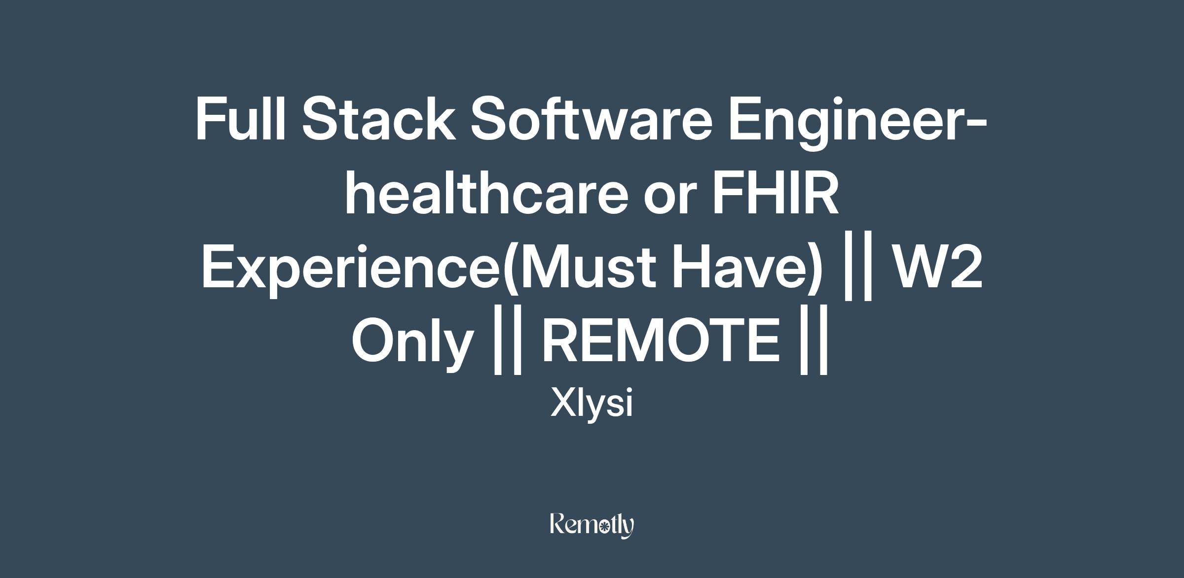 Full Stack Software Engineer-healthcare or FHIR Experience(Must Have) || W2 Only || REMOTE ||