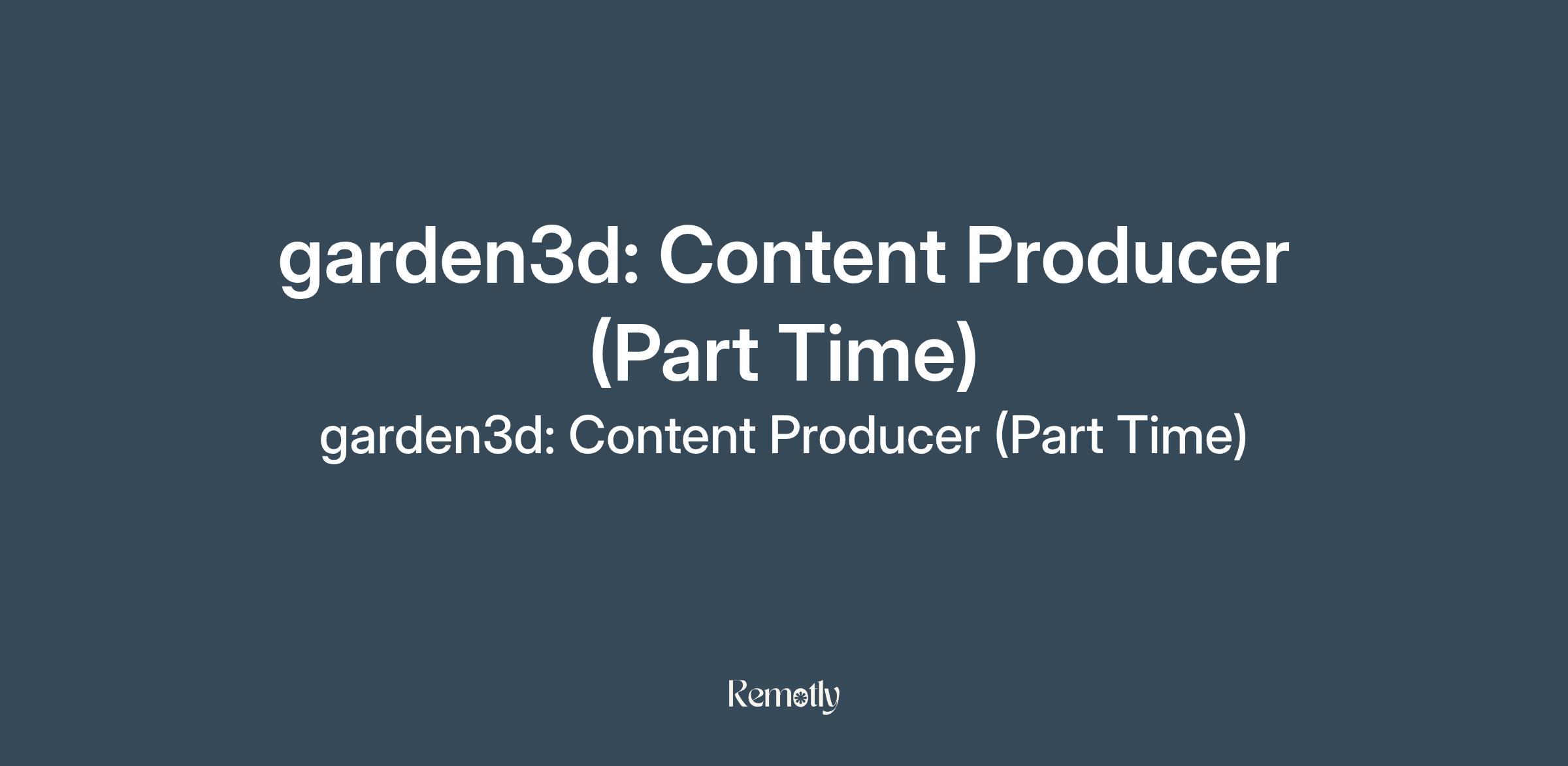 We are hiring a Content Producer (Part-time) for the garden3d creative collective