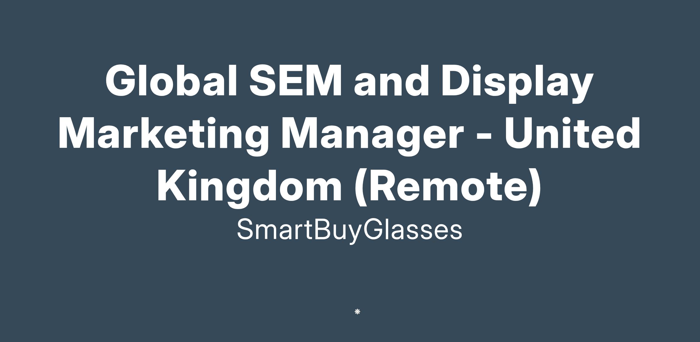 Global SEM and Display Marketing Manager - United Kingdom (Remote)