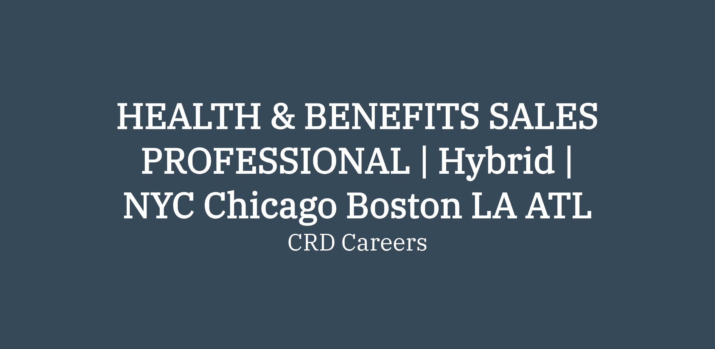HEALTH & BENEFITS SALES PROFESSIONAL | Hybrid | NYC Chicago Boston LA ATL