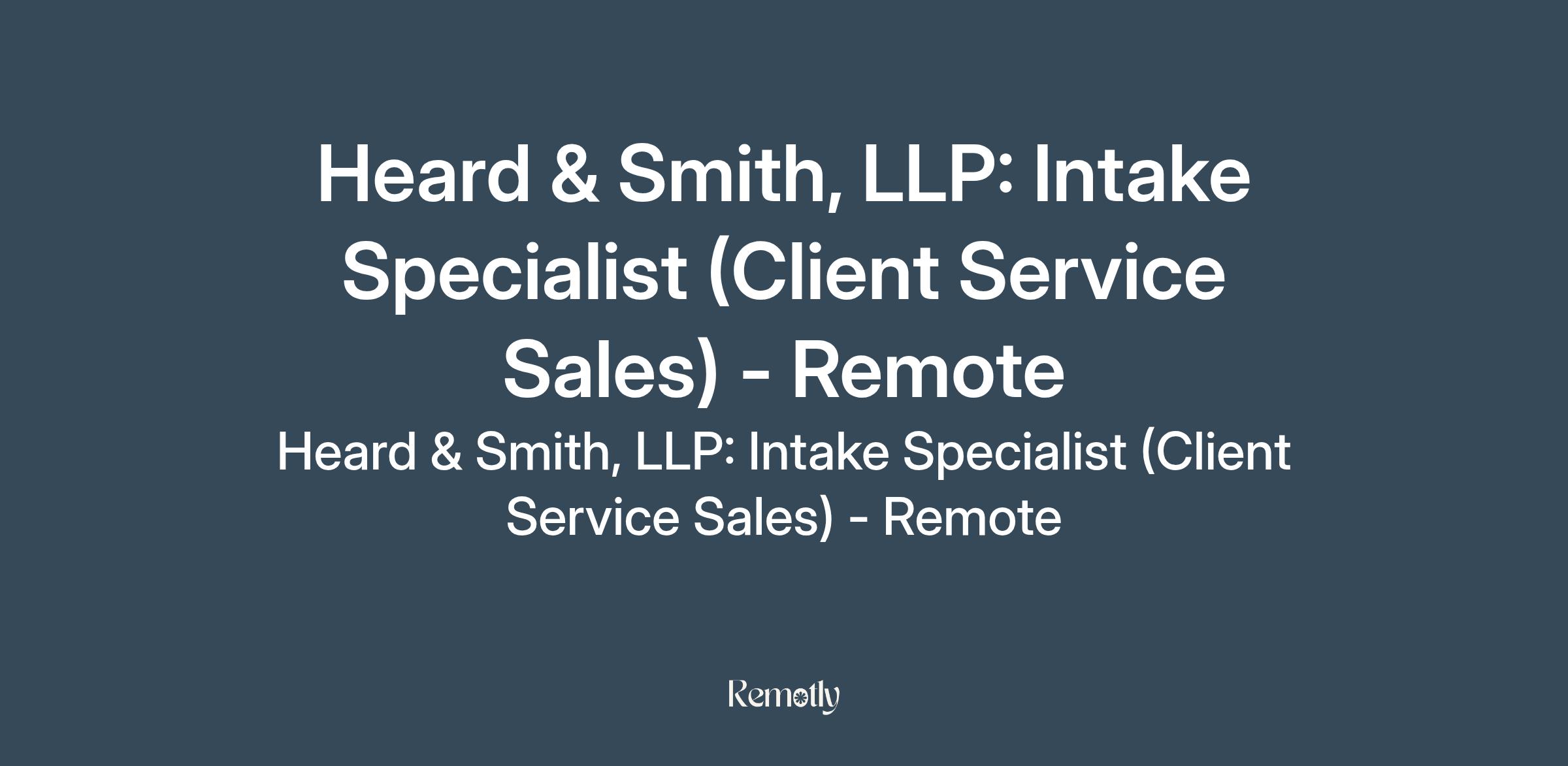 To apply: https://weworkremotely.com/remote-jobs/heard-smith-llp-intake-specialist-client-service-sales-remote-5
