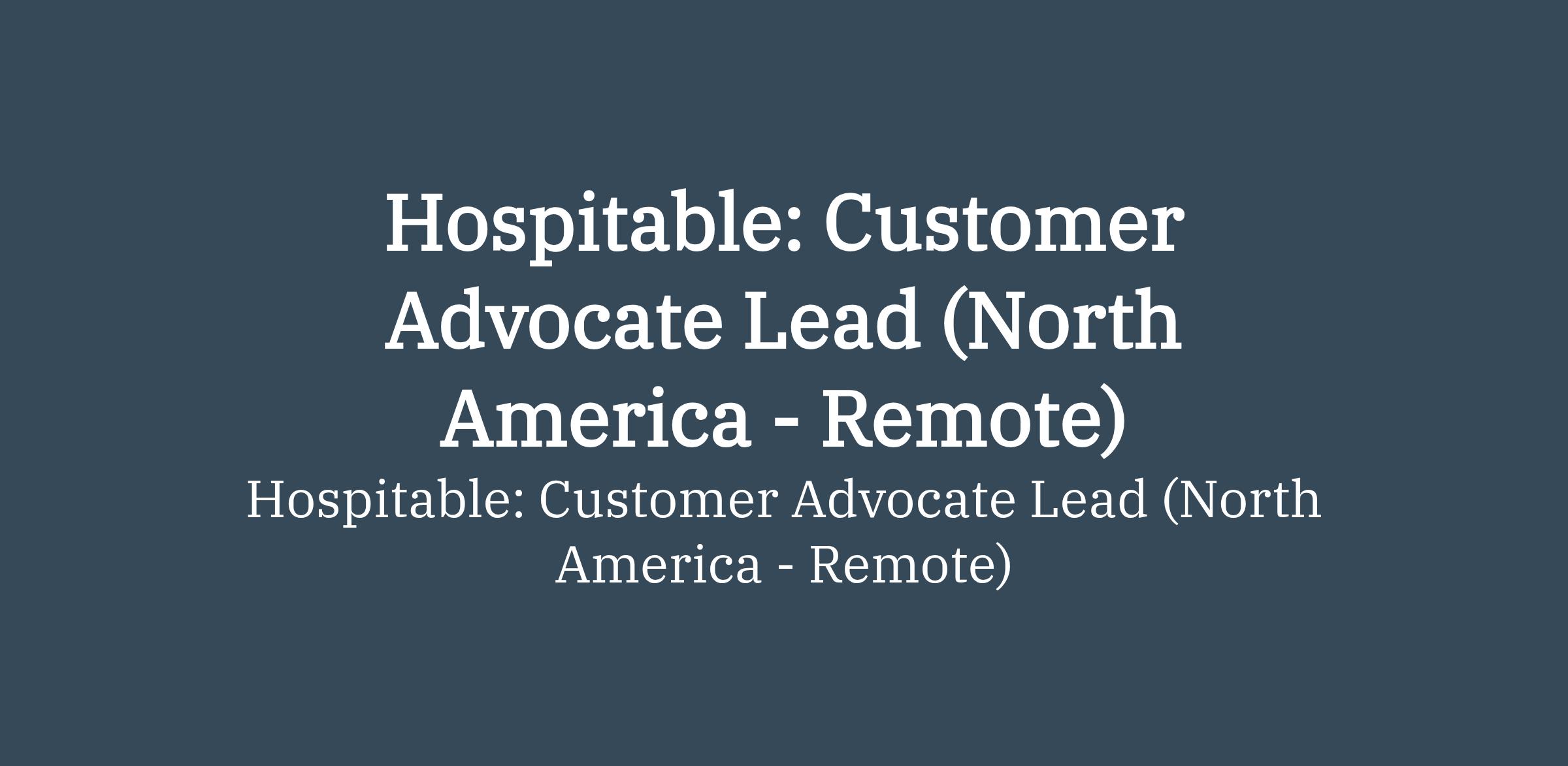 Hospitable: Customer Advocate Lead (North America - Remote)