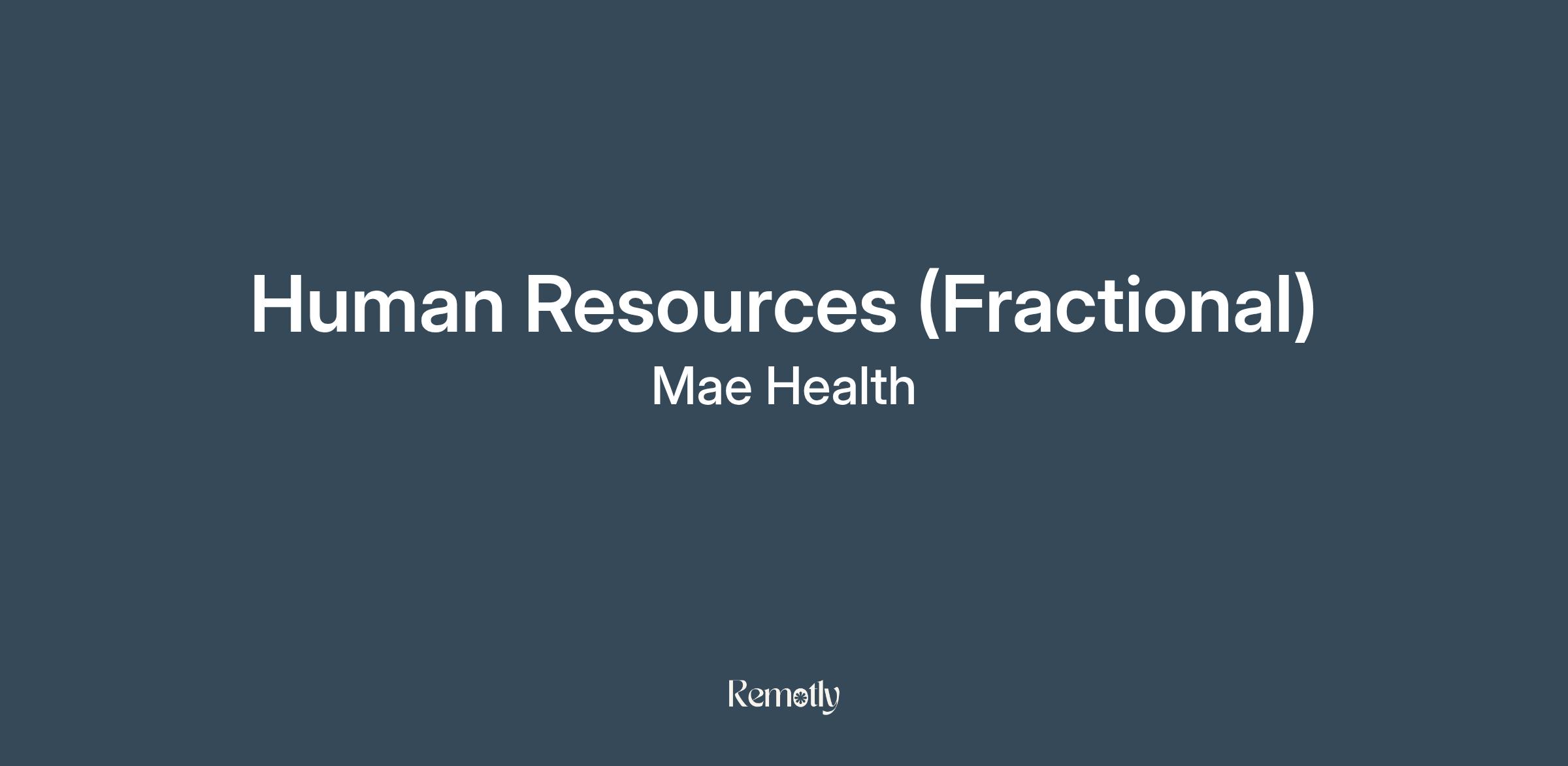 Mae is looking for fractional Human Resources (HR) support who is passionate about fostering start-up teams that are driving maternal health equity. HR at Mae will be responsible for our end-to-end hiring, managing benefits and our Employee Handbook, and driving our onboarding and offboarding procedures. This role will also support activities that foster community in a remote team.