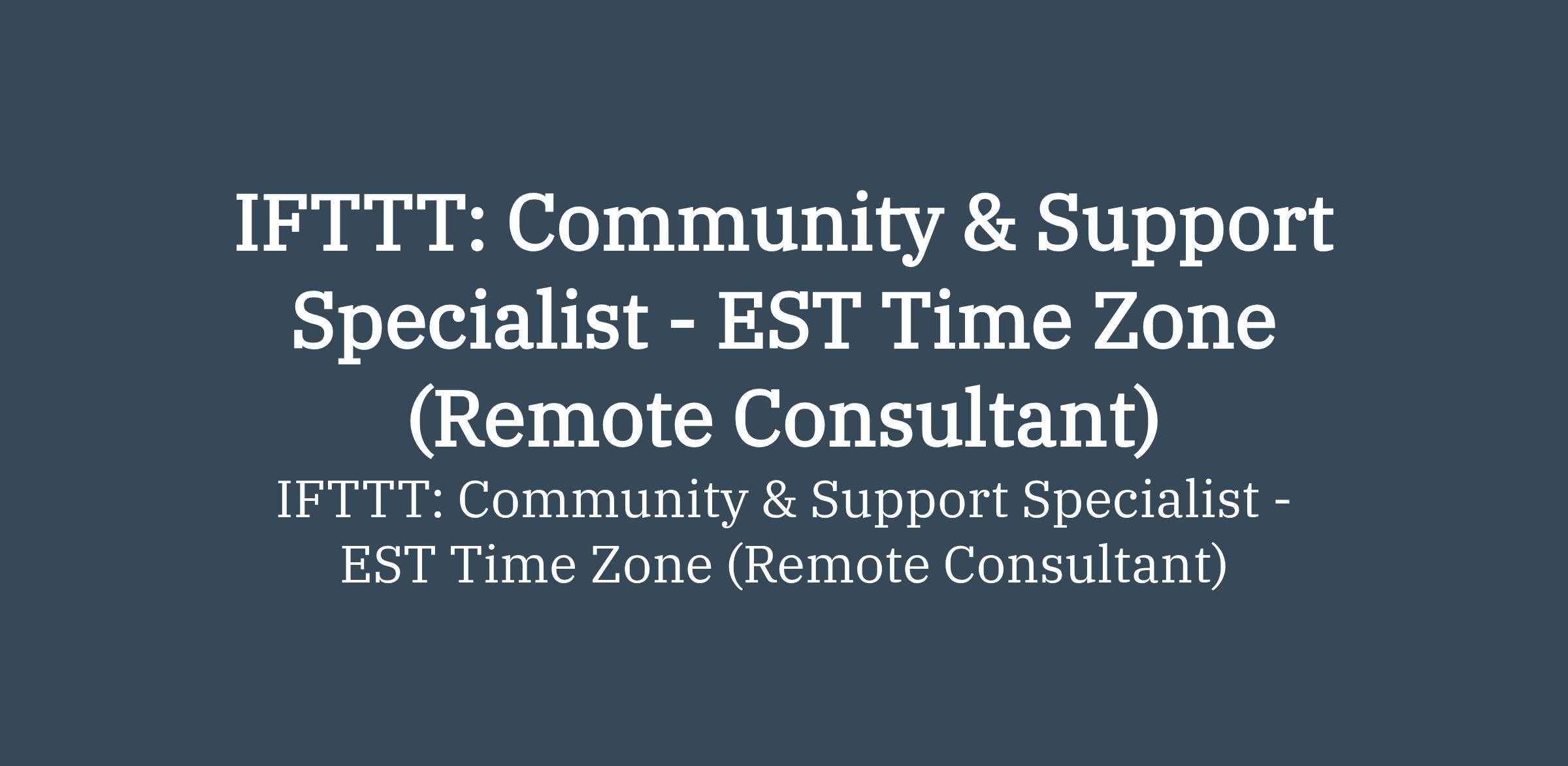 To apply: https://weworkremotely.com/remote-jobs/ifttt-community-support-specialist-est-time-zone-remote-consultant