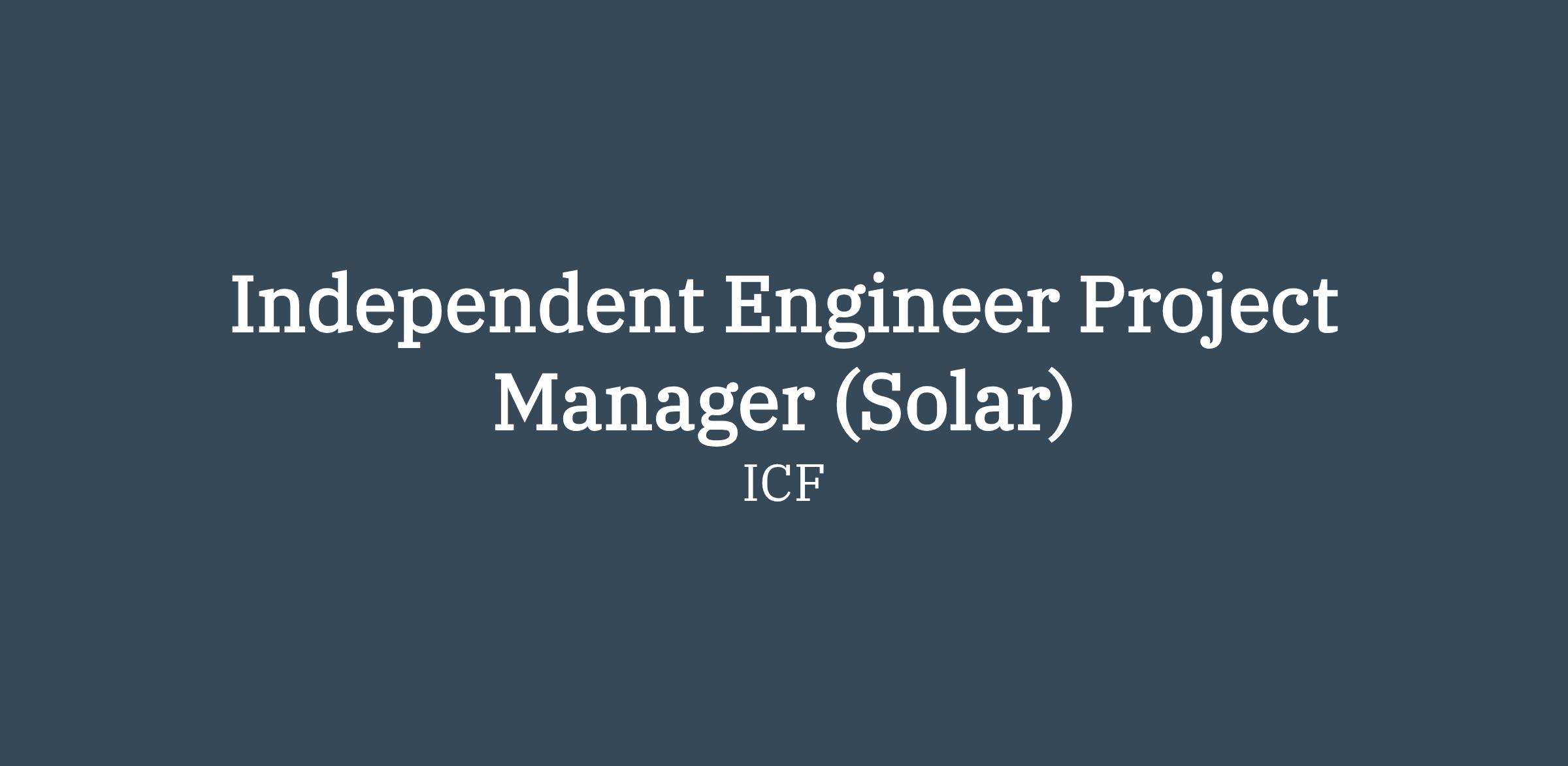 ICF is looking for a seasoned Independent Engineer Project Manager to lead technical due diligence and advisory services for utility-scale solar and battery energy storage (BESS) projects. In this role, you’ll be a trusted partner to lenders, tax equity investors, and other financing stakeholders - providing unbiased engineering assessments that drive smart financial decisions and ensure project success from development through operation.