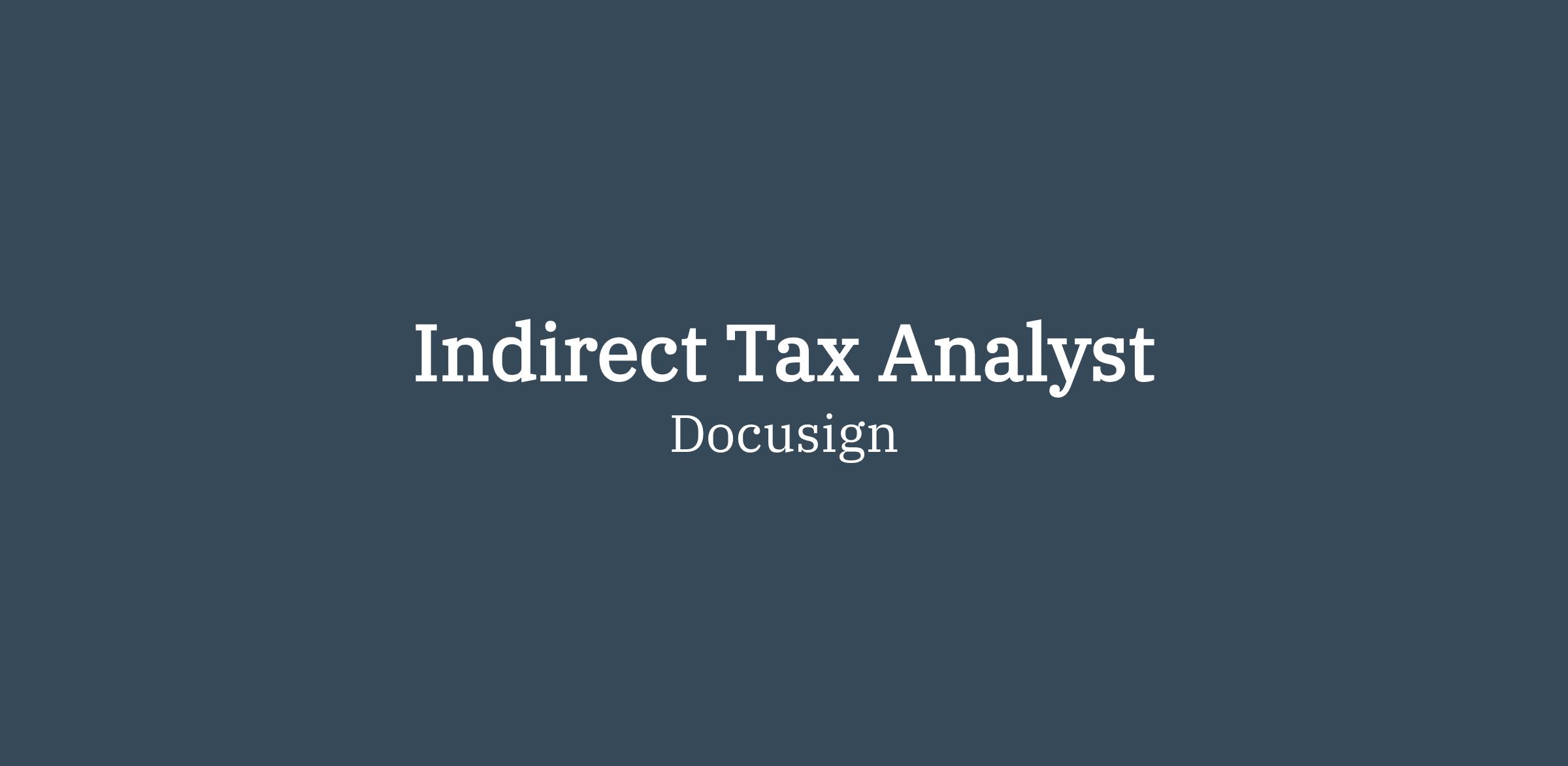 Docusign is looking for an experienced and motivated Indirect Tax Analyst to join our indirect tax team. In this role, you will focus on US state and local sales and use tax and global value added tax (VAT) and goods & services (GST) tax research, compliance, and reporting. We are looking for a team player that will thrive in a dynamic environment and contribute to the continuous improvement of our tax processes.