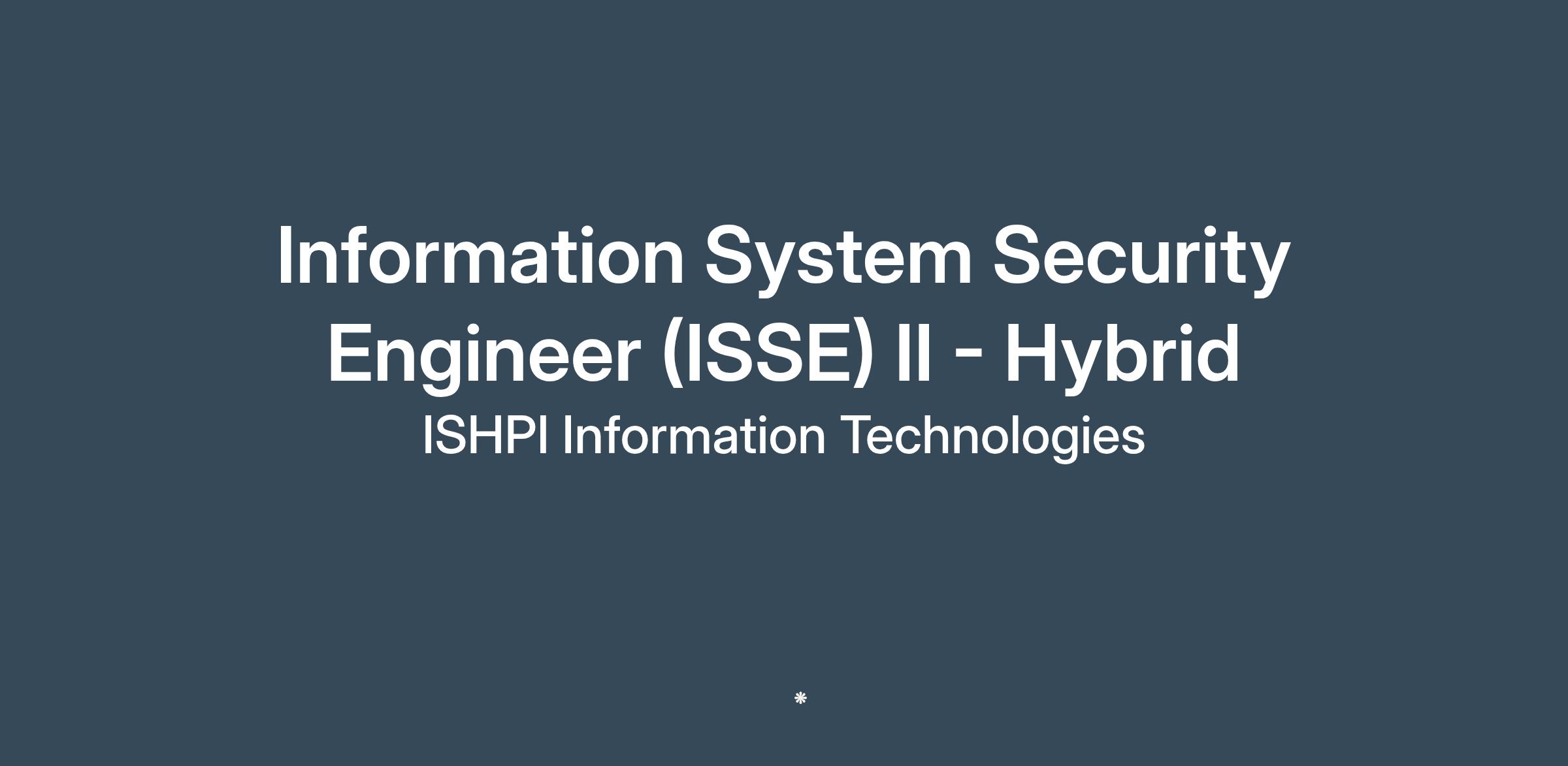 “Ishpi Information Technologies, Inc. is an Equal Opportunity Employer. All qualified candidates will be considered without regard to legally protected characteristics.