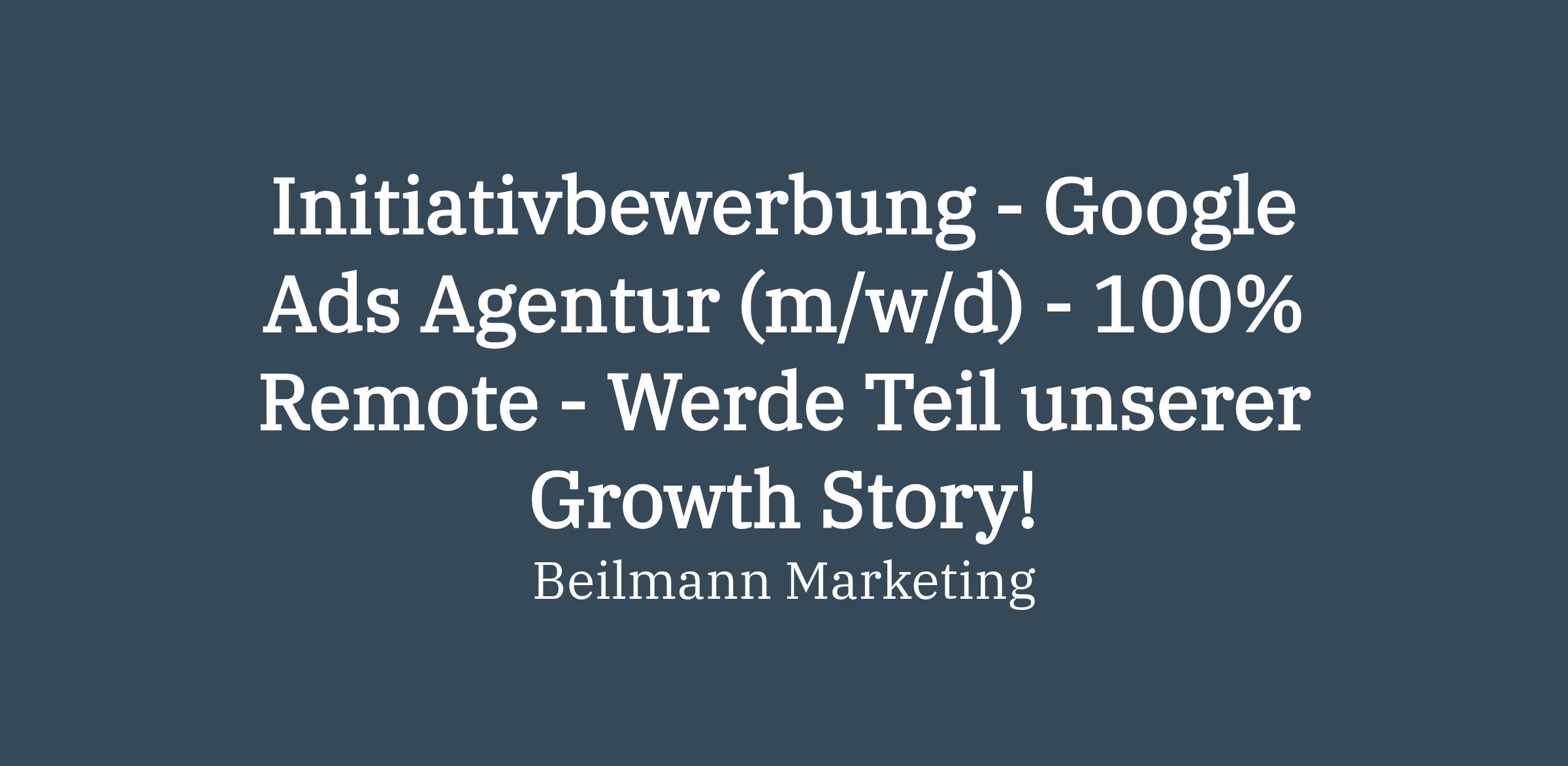 Initiativbewerbung - Google Ads Agentur (m/w/d) - 100% Remote - Werde Teil unserer Growth Story!