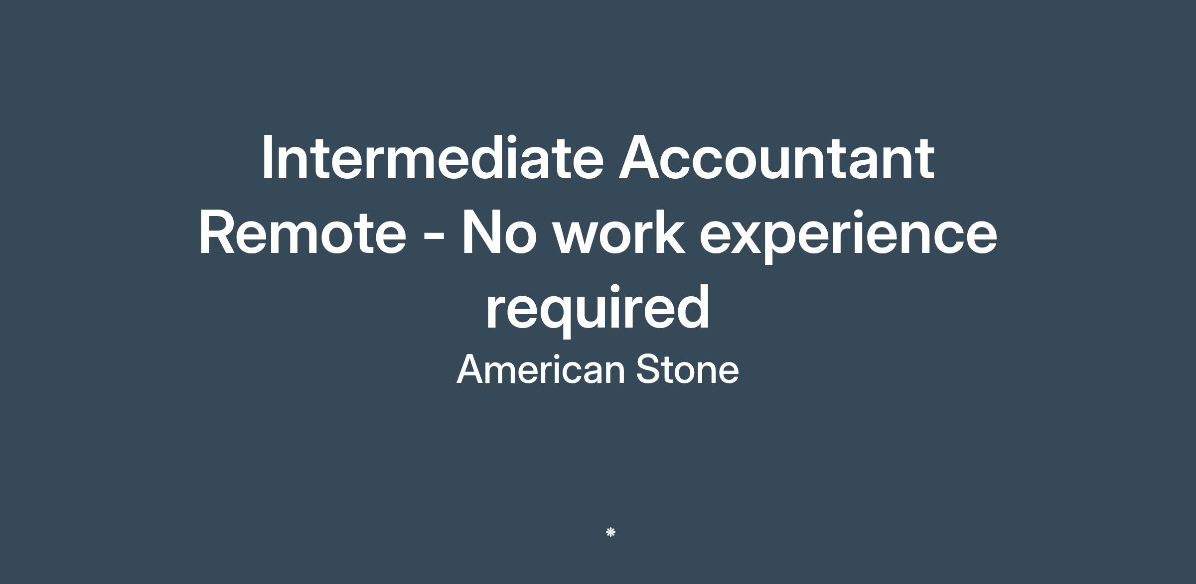 American Stone is looking to hire a Remote Intermediate Accountant to help with accounts payable, accounts receivable, payroll, and inventory. No work experience required, Masters Degree in Accounting or related field required. Open to International Candidates who've completed study in the US or an American University.