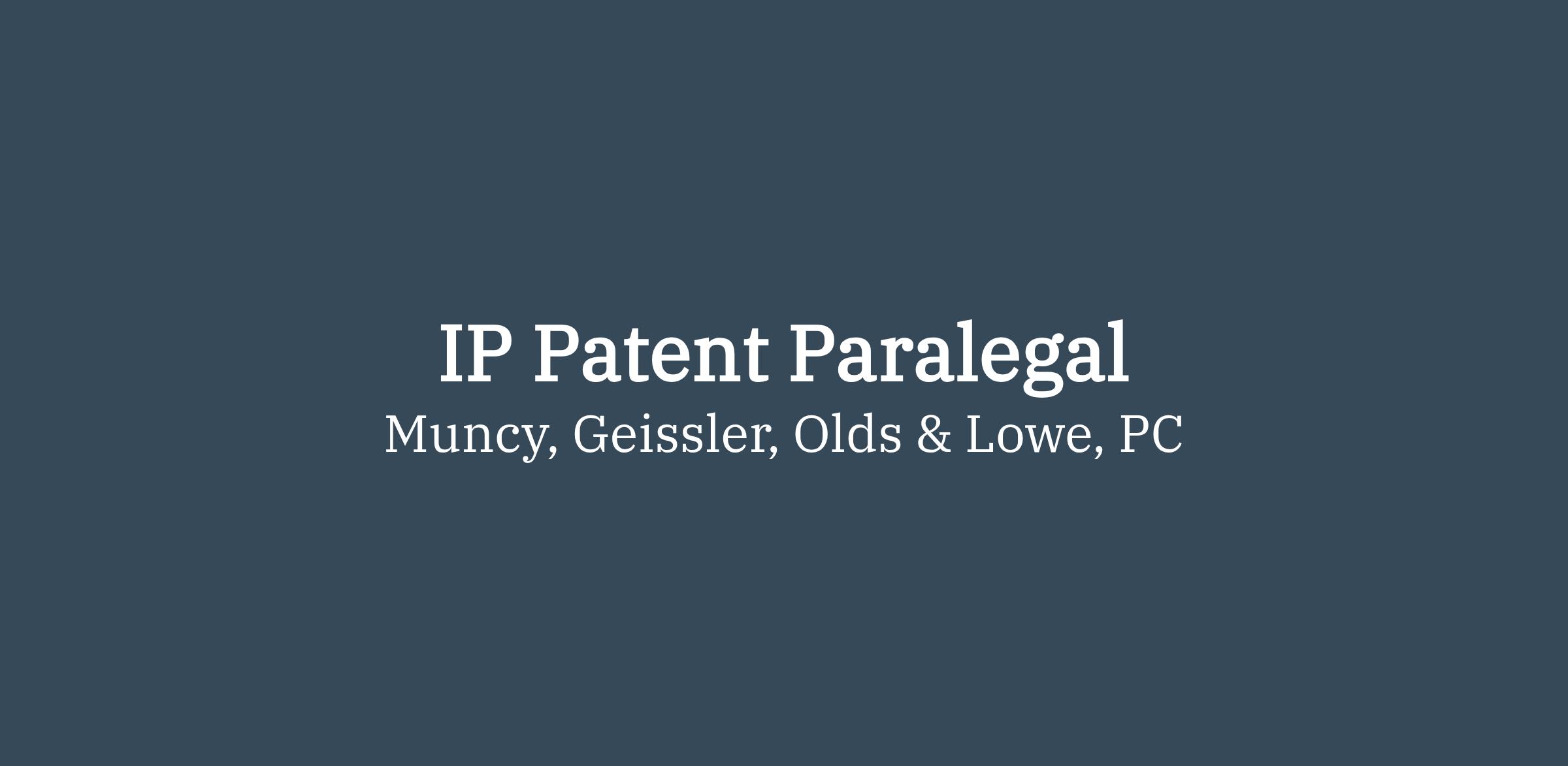 Muncy, Geissler, Olds & Lowe, P.C. (MG-IP) is seeking a detail-oriented, full-time professional for a remote dual-function role focused primarily on IP patent paralegal responsibilities, with secondary support in docketing.