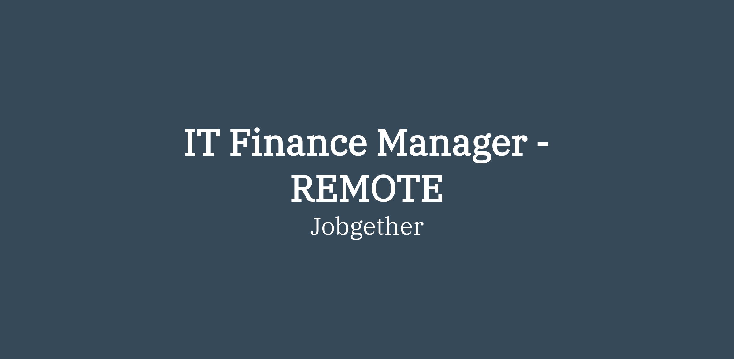 IT Finance Manager - REMOTE