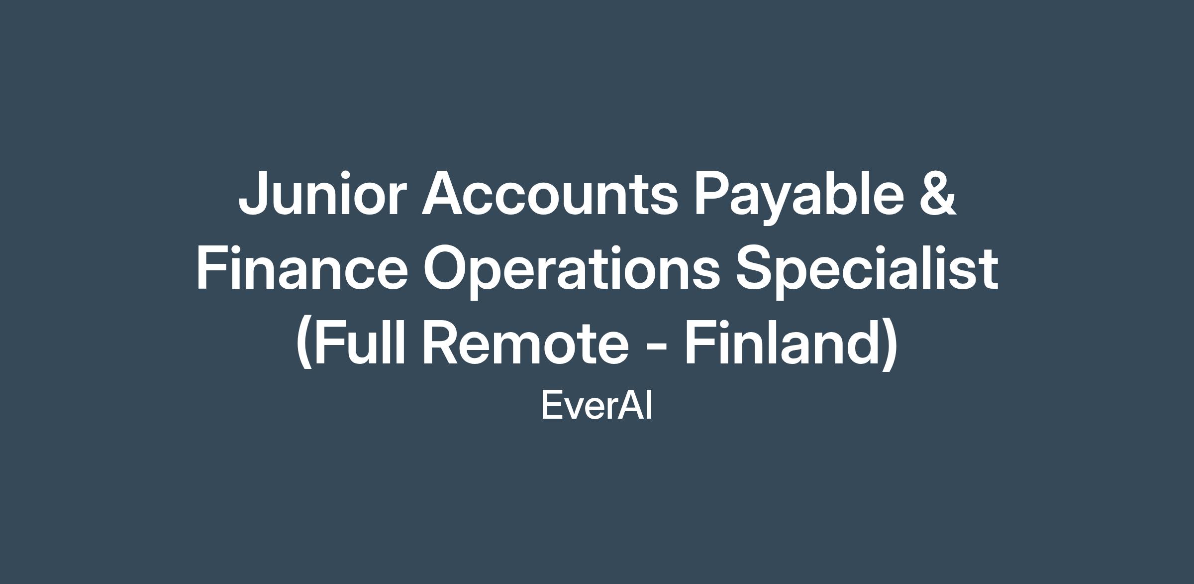 Junior Accounts Payable & Finance Operations Specialist (Full Remote - Finland)