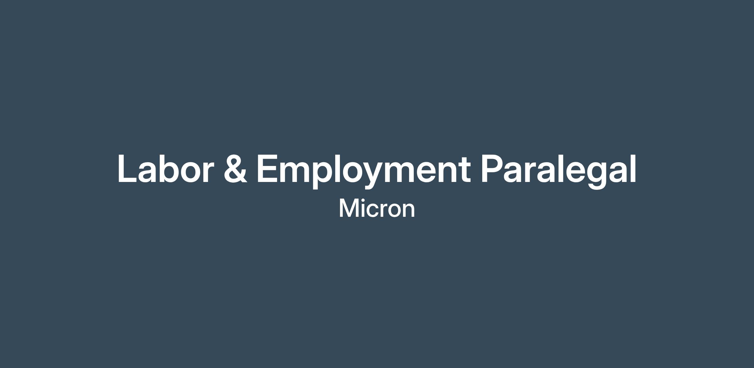 The Micron Legal Department is seeking an experienced legal professional to support our in-house labor and employment legal team. Reporting to the Associate General Counsel for Global Labor & Employment, this role supports legal matters that routinely involve sensitive employee and company information, and require a high degree of trust, discretion, and independent judgment. The position operates at a global level and involves close, ongoing collaboration with other legal teams, human resources, employee relations, compliance, and business partners across multiple regions and time zones. Success in this role requires flexibility to support matters that may arise outside standard business hours and the ability to work autonomously while maintaining the highest standards of professionalism and confidentiality.
