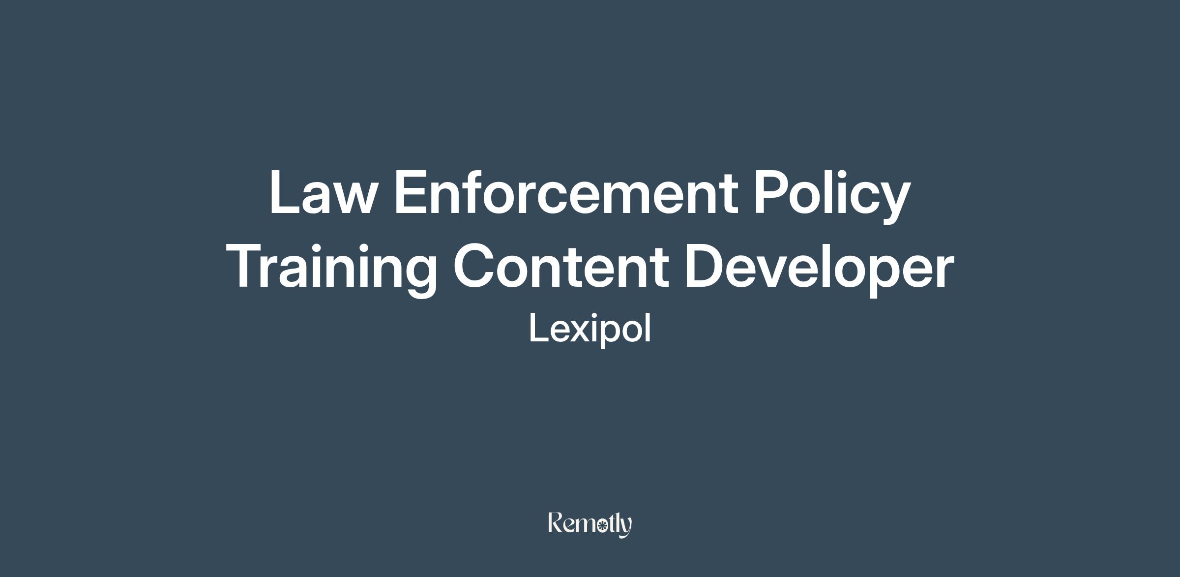 Law Enforcement Policy Training Content DeveloperRemote position #LI-RemoteCandidates must already live in the United States.No visa sponsorship. We are unable to sponsor or take over sponsorship of an employment Visa (H1-B, Student visa, or OPT visa) at this time.At Lexipol, our mission is to create safer communities and empower the individuals on the front lines with market-leading content and technology. Our top-notch team works closely with law enforcement, fire, EMS, corrections, and local government professionals to tailor our solutions to better address today’s challenges and keep first responders coming home safely at the end of each shift.