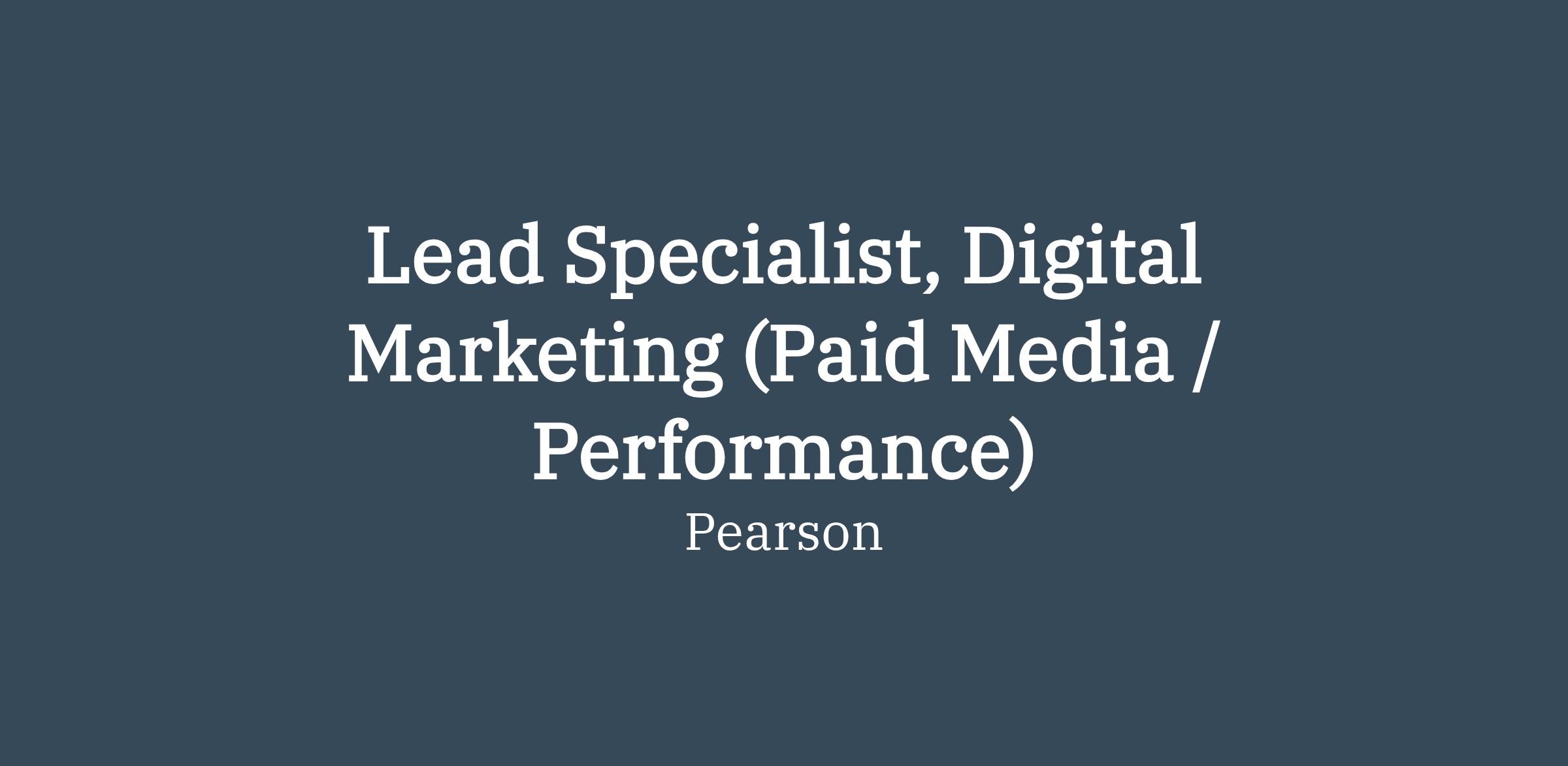 Lead Specialist, Digital Marketing (Paid Media / Performance)