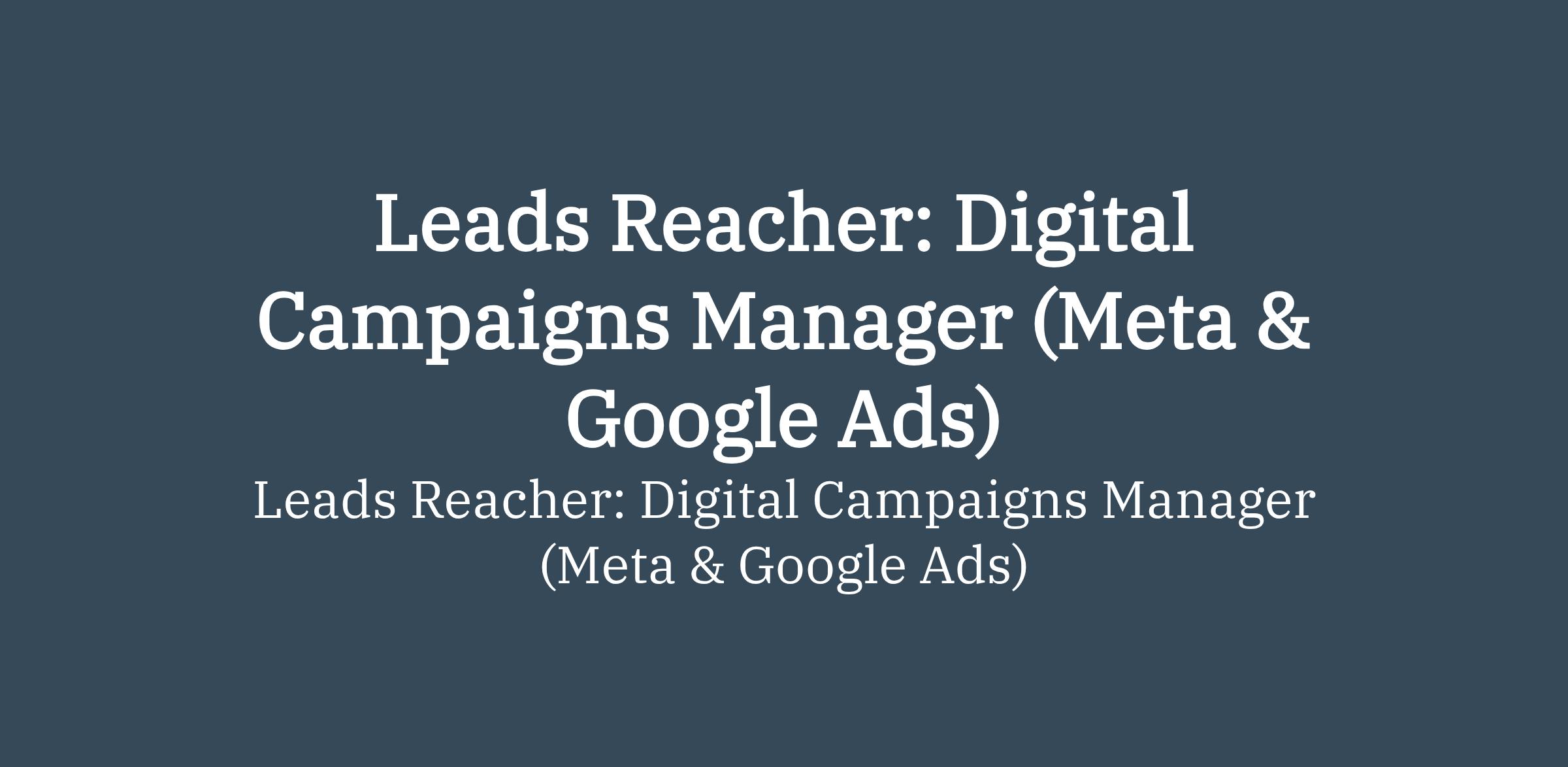 To apply: https://weworkremotely.com/remote-jobs/leads-reacher-digital-campaigns-manager-meta-google-ads