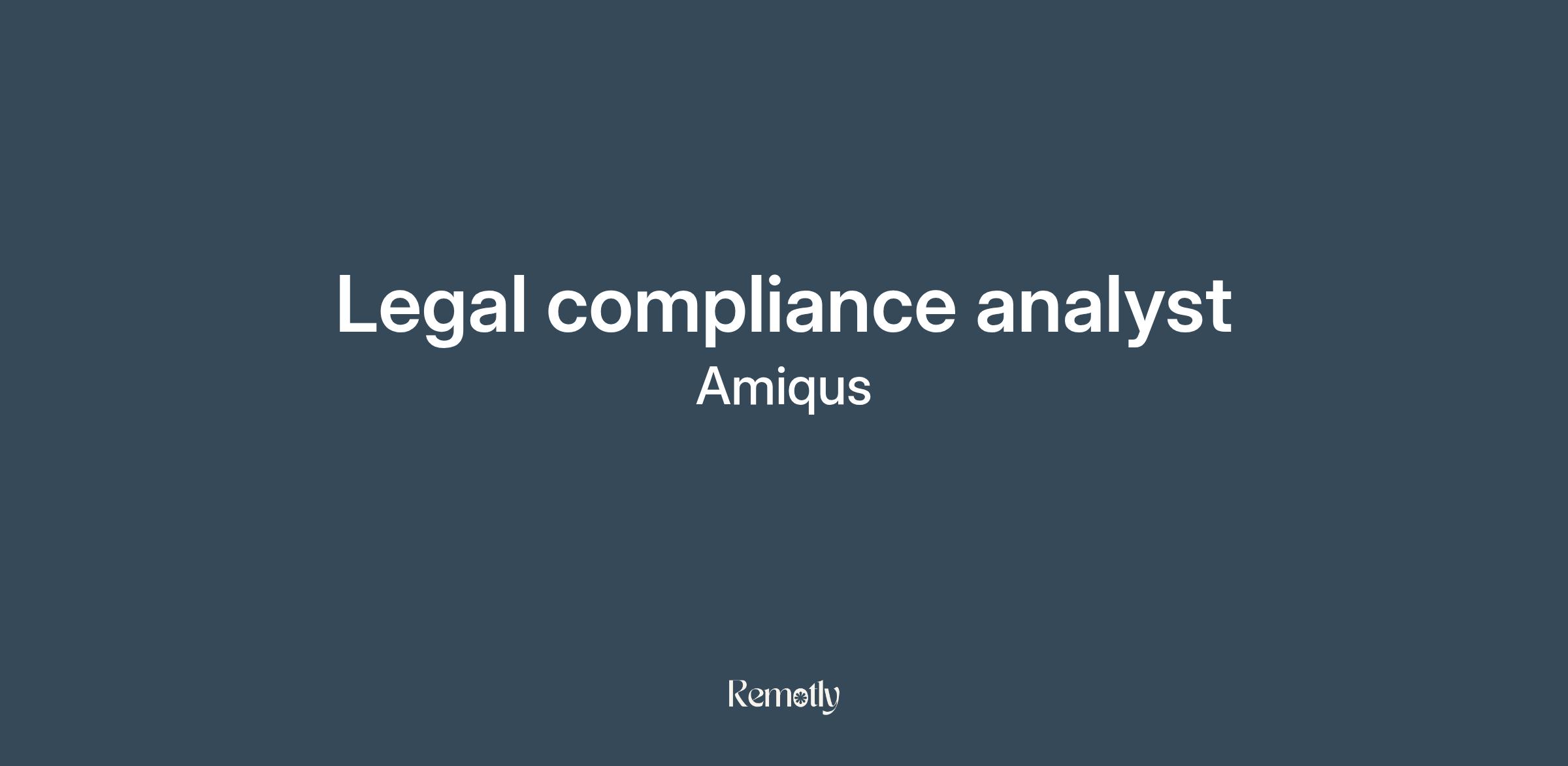 The Legal Compliance Analyst is a vital role within the Security, Audit, Risk and Compliance (SARC) Team and focuses on legal and compliance activities across Amiqus. This role is key to how we operate as a business and oversees vital areas of output such as contract reviews, terms and conditions, notices, client compliance, data protection and other legal and compliance considerations as detailed below. This role works closely with the other members of the SARC team and across commercial and client facing teams.