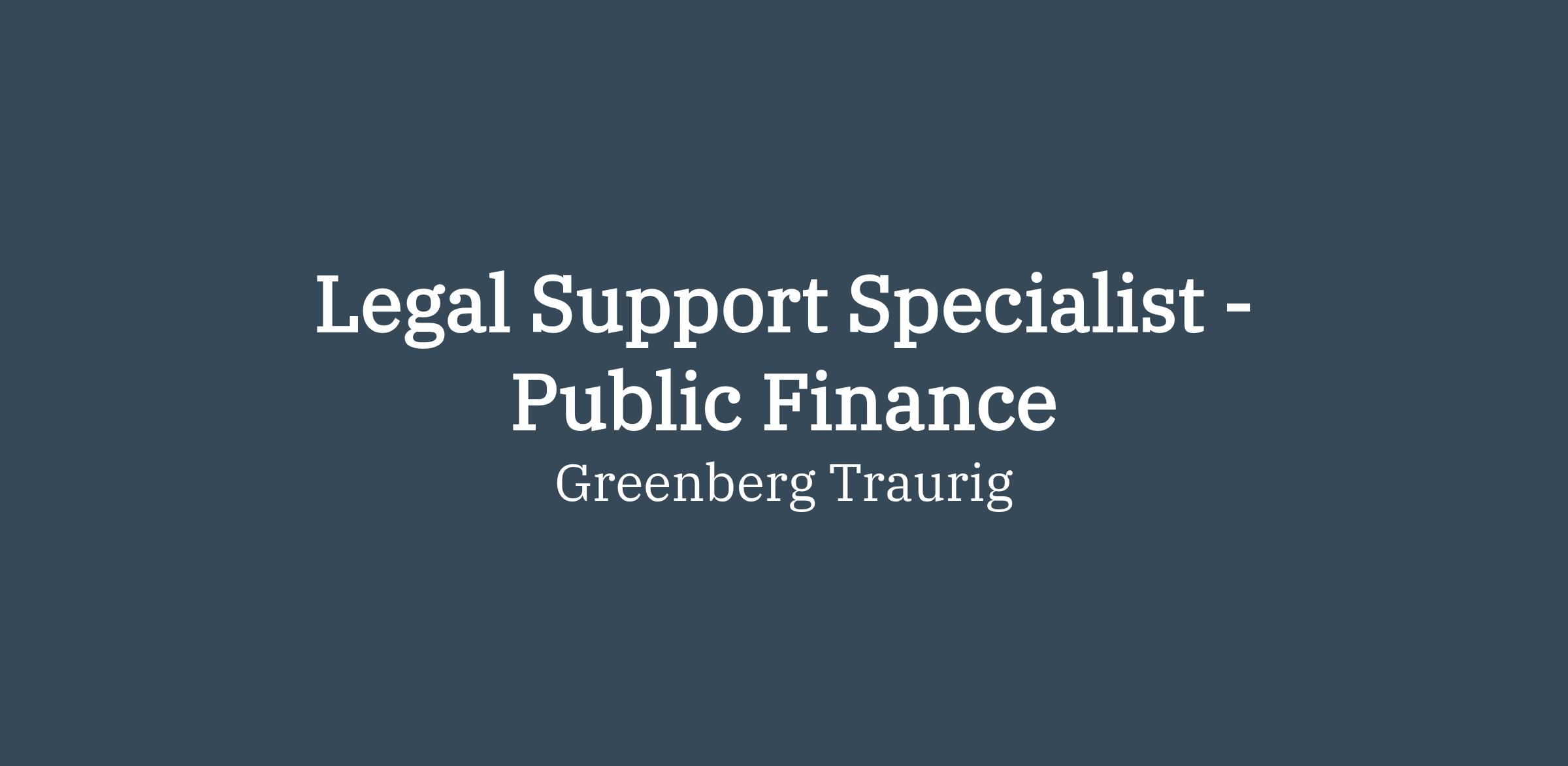 Join our Public Finance Team as a Legal Support Specialist