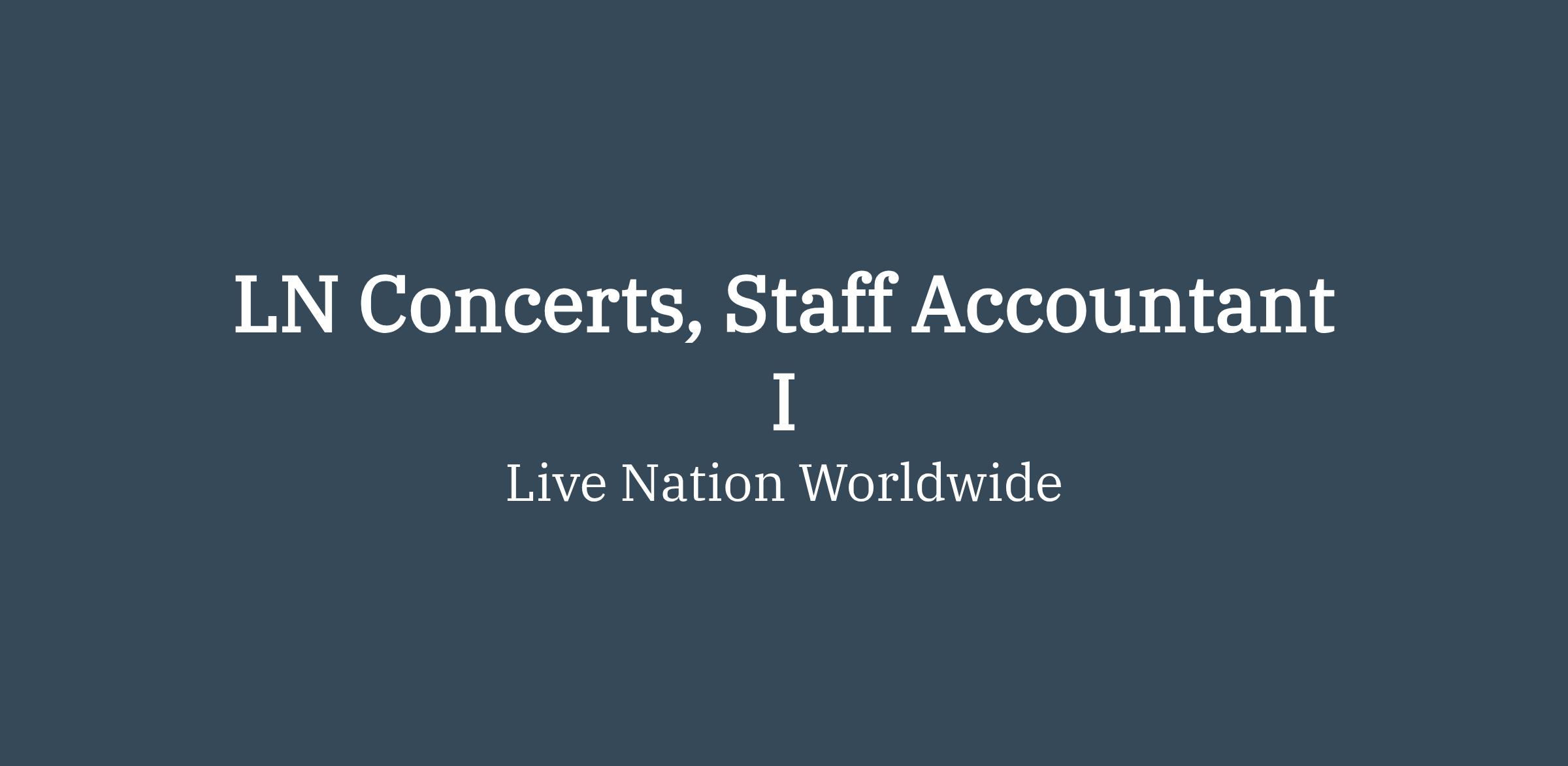 We are seeking a Staff Accountant I for the Live Nation Concerts division, a segment of the Live Nation live music business. This position is a blend of transactional and entry-level Accounting. This person must be a self-motivated individual with the ability to multitask.