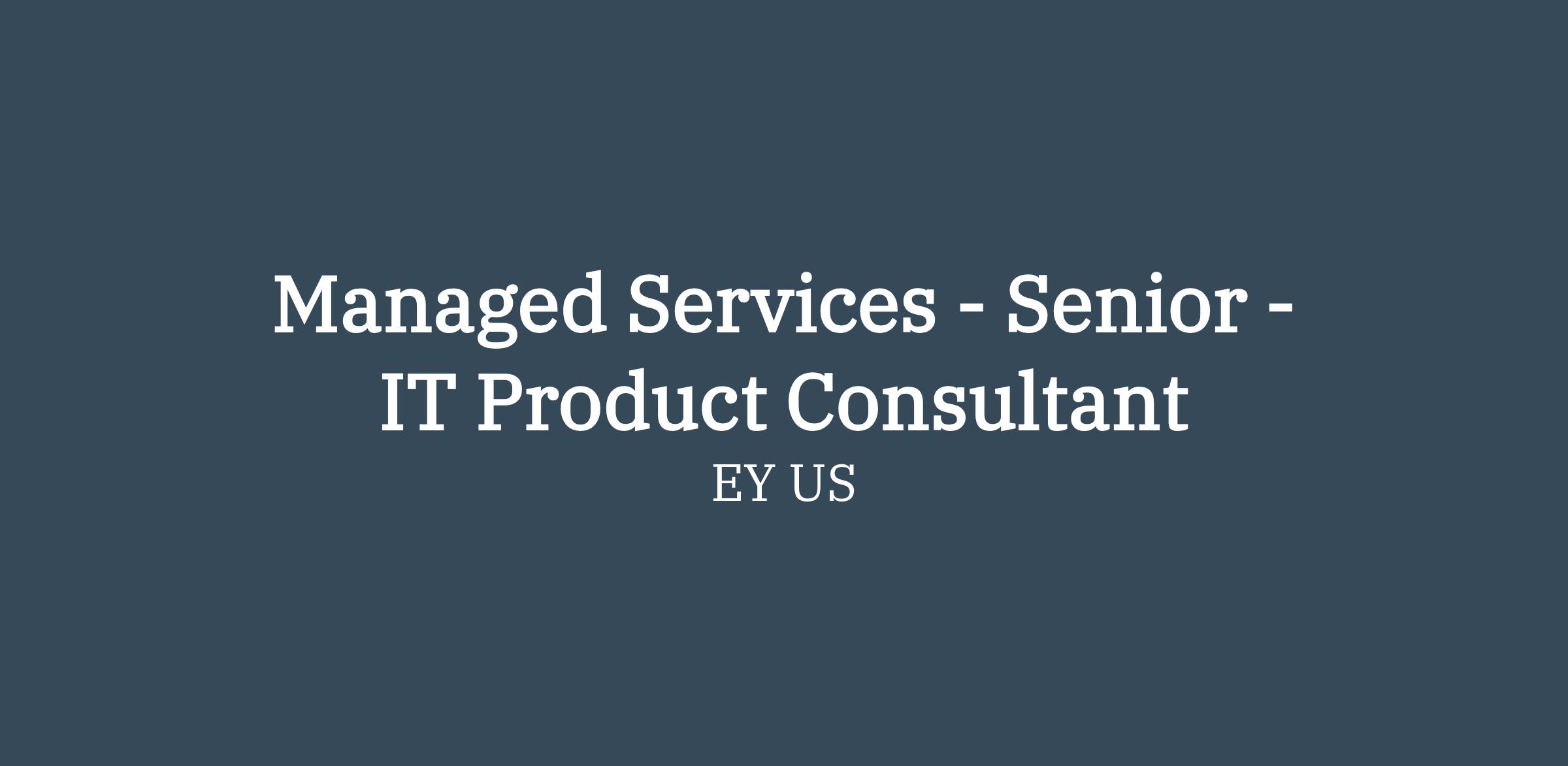Managed Services - Senior Consultant – IT Product Management