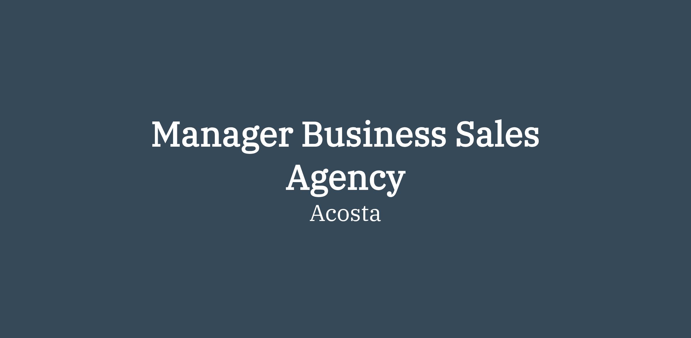 DescriptionAs Business Manager, you will play a pivotal role in driving our company's success by achieving key business objectives and fostering strong relationships with our customers. Responsible for the management of the assigned customer business in a defined marketing area. Primary responsibility includes increasing sales and market share of the brands represented, while earning a profit for our manufacturers and Acosta.