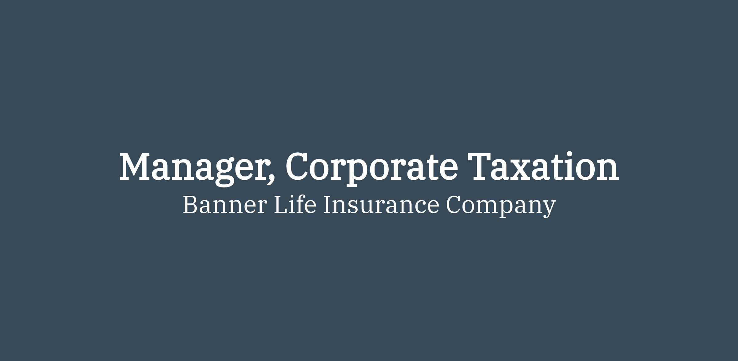 The Manager, Corporate Taxation will manage all tax compliance projects including tax returns and financial statement provisions. Perform tax research and other projects or assignments as determined by management. Directs others on larger projects including consolidated tax returns of Banner Life Insurance Company. The position typically works under limited supervision and direction. Incumbents of this position will regularly exercise discretionary and substantial decision-making authority.