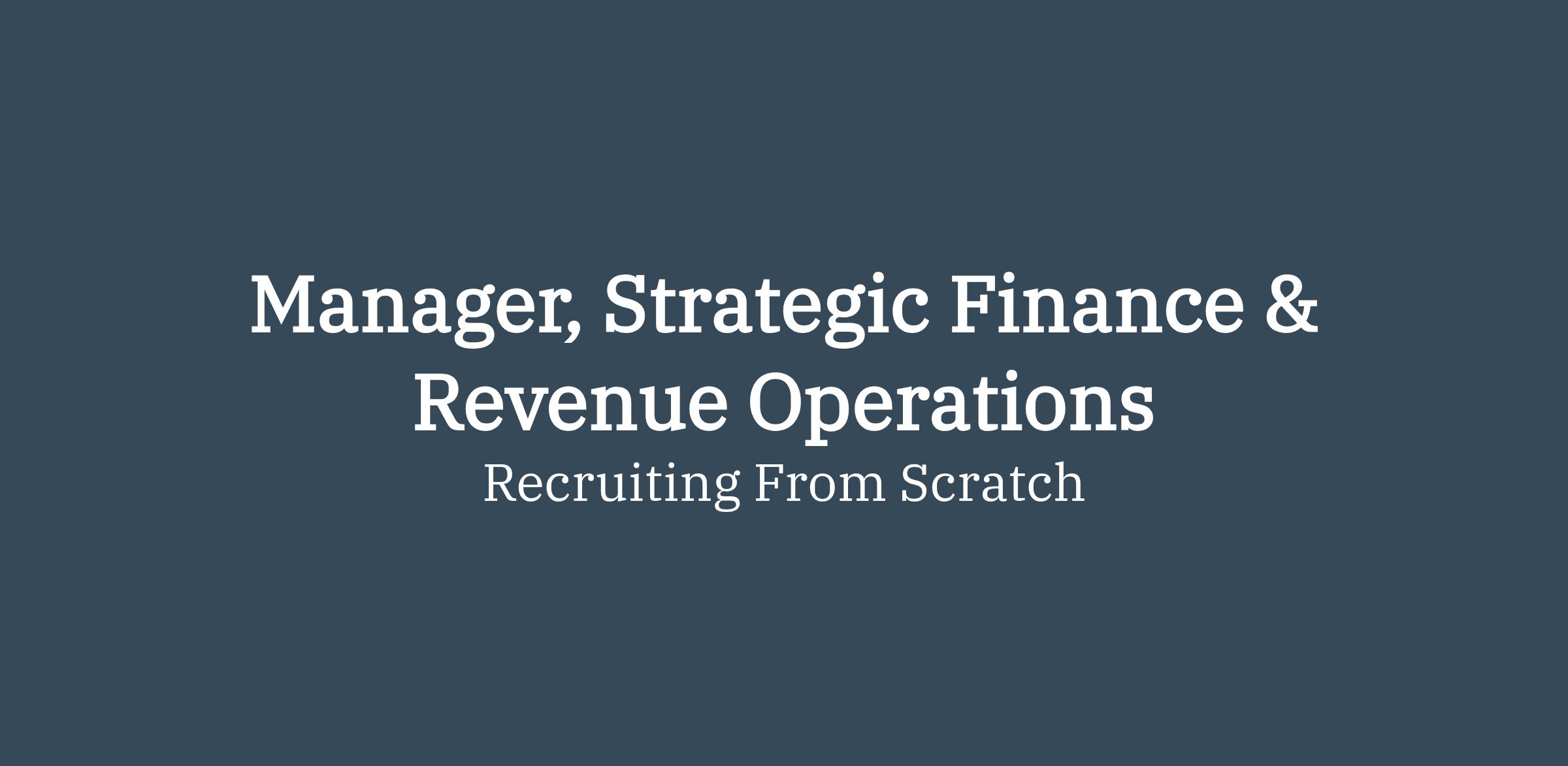 Manager, Strategic Finance & Revenue Operations