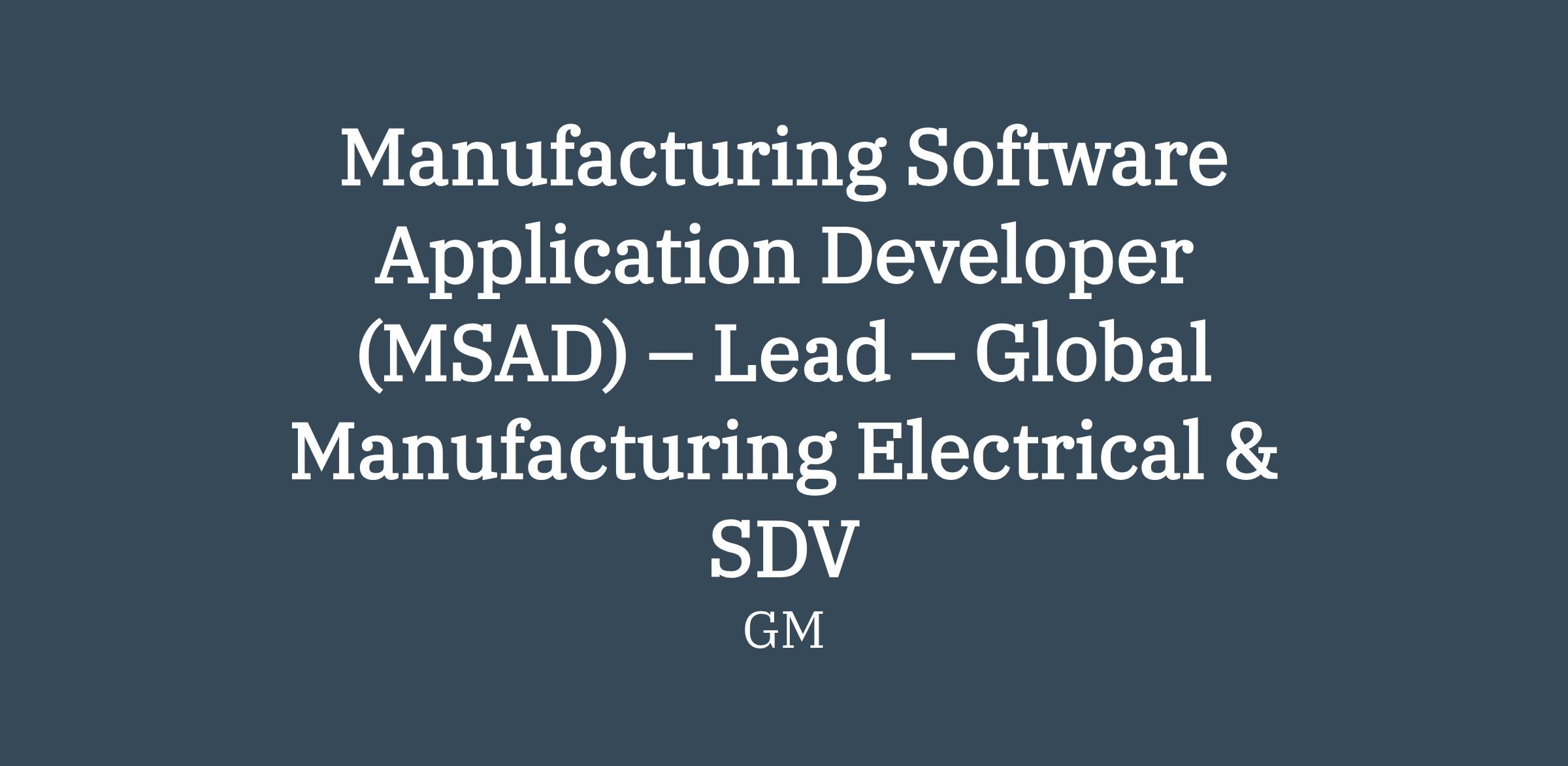 WHAT: As a MSAD, you will develop, validate, and maintain application software for GM Manufacturing tools and processes.