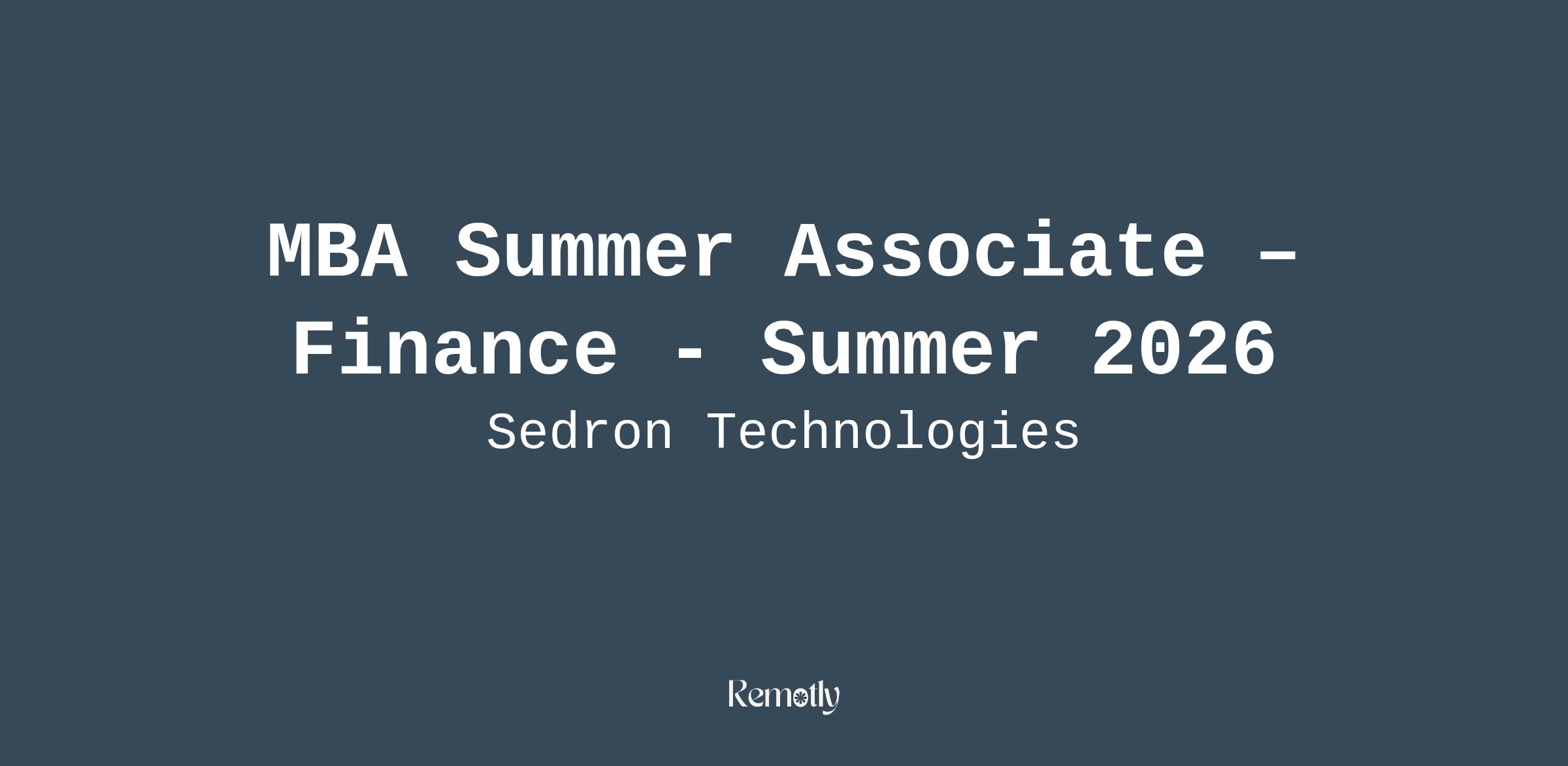 Sedron Technologies is hiring a talented MBA Summer Associate – Finance for Summer 2026 to work remotely in the Chicago, IL area!