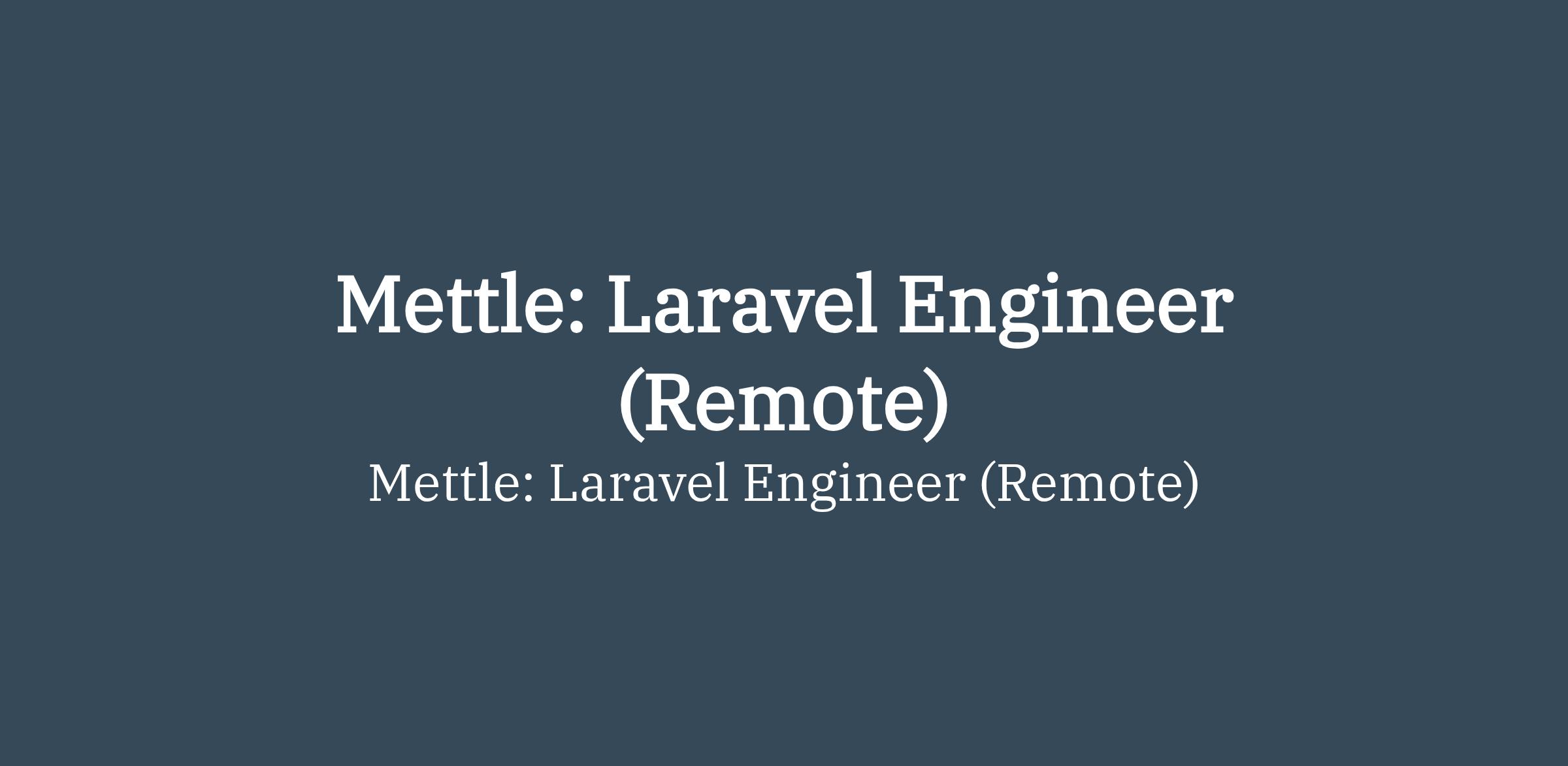 To apply: https://weworkremotely.com/remote-jobs/mettle-laravel-engineer-remote