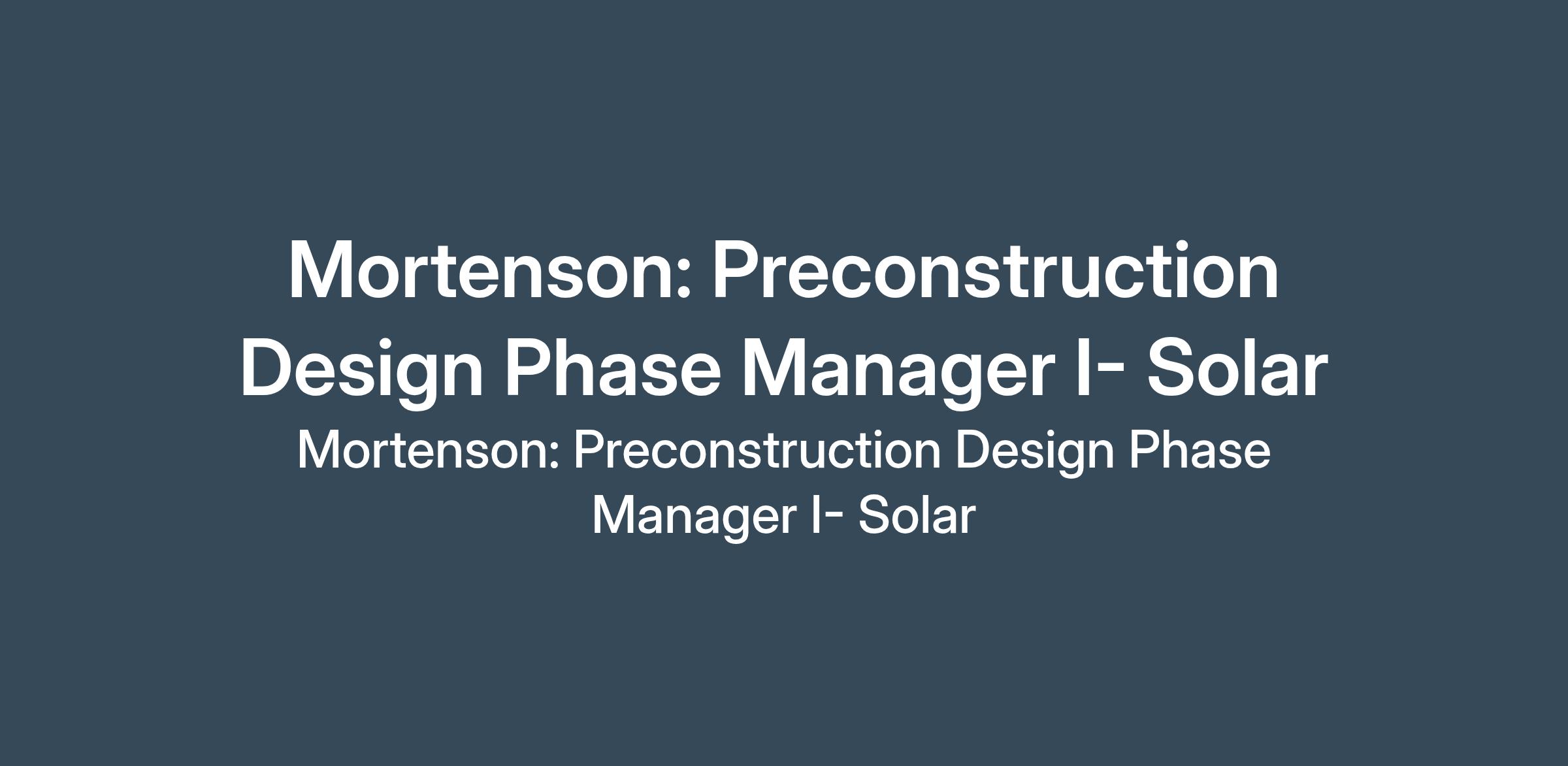 Mortenson is seeking an experienced Design Phase Manager I (DPM) to join our Solar group who can interact with staff at all levels, remain flexible, resourceful, proactive, and efficient in a dynamic environment, anticipate and solve problems creatively, and ensure the owner’s vision is translated into design solutions and construction parameters, while demonstrating excellent communication skills and attention to detail, and potentially managing two projects simultaneously or one larger project.