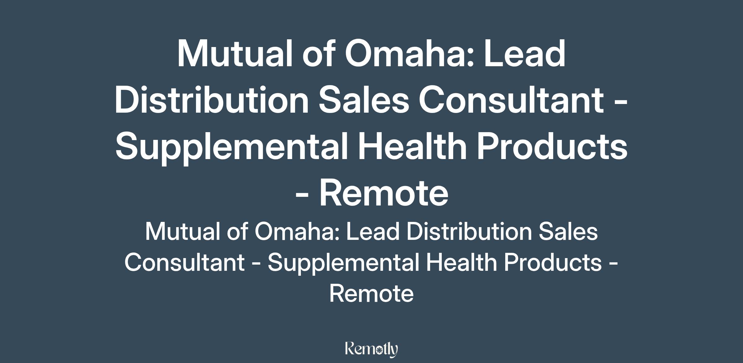 To apply: https://weworkremotely.com/remote-jobs/mutual-of-omaha-lead-distribution-sales-consultant-supplemental-health-products-remote-2