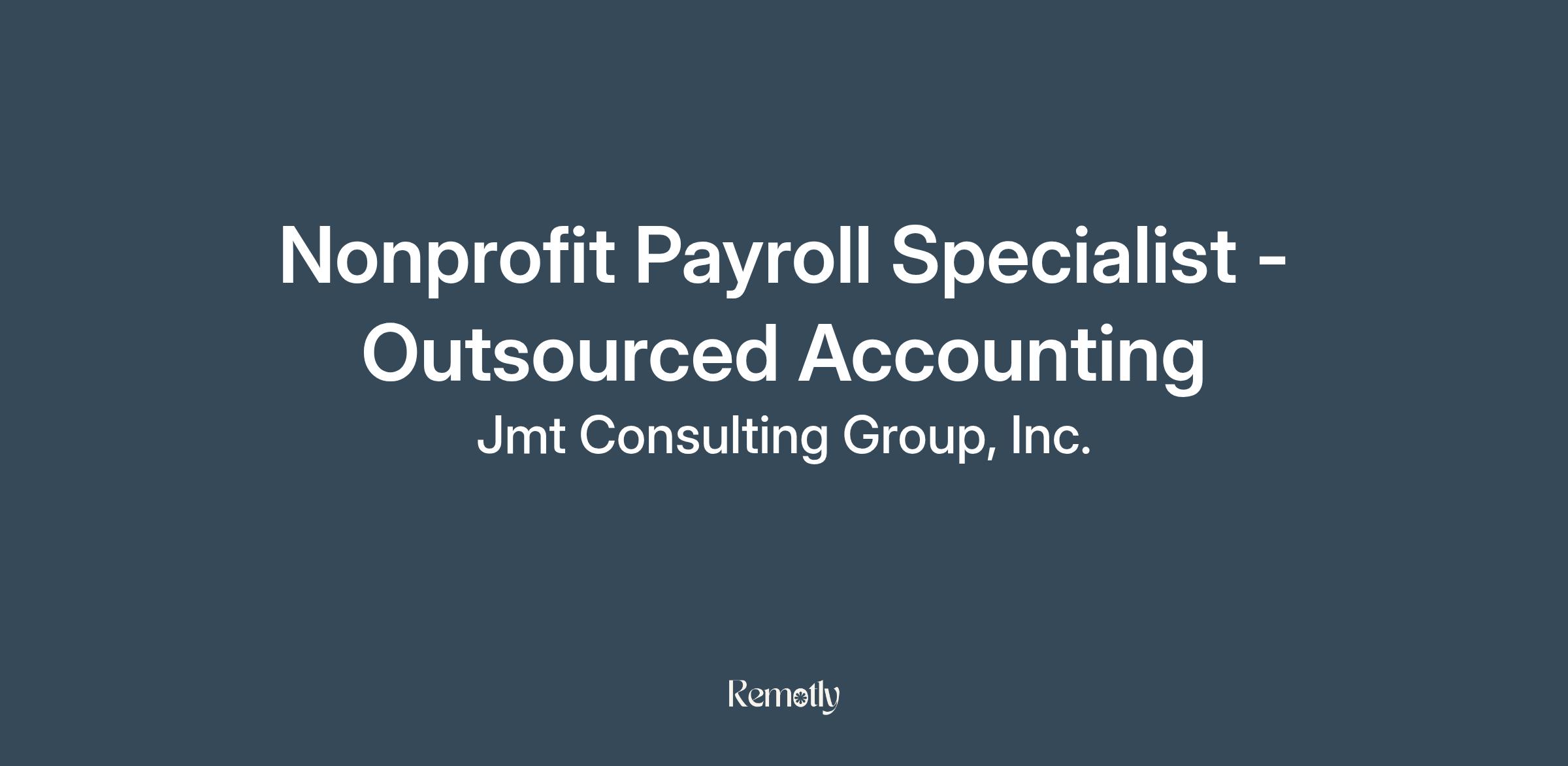 payroll services. As an outsourced payroll specialist, you will work directly with nonprofit clients
