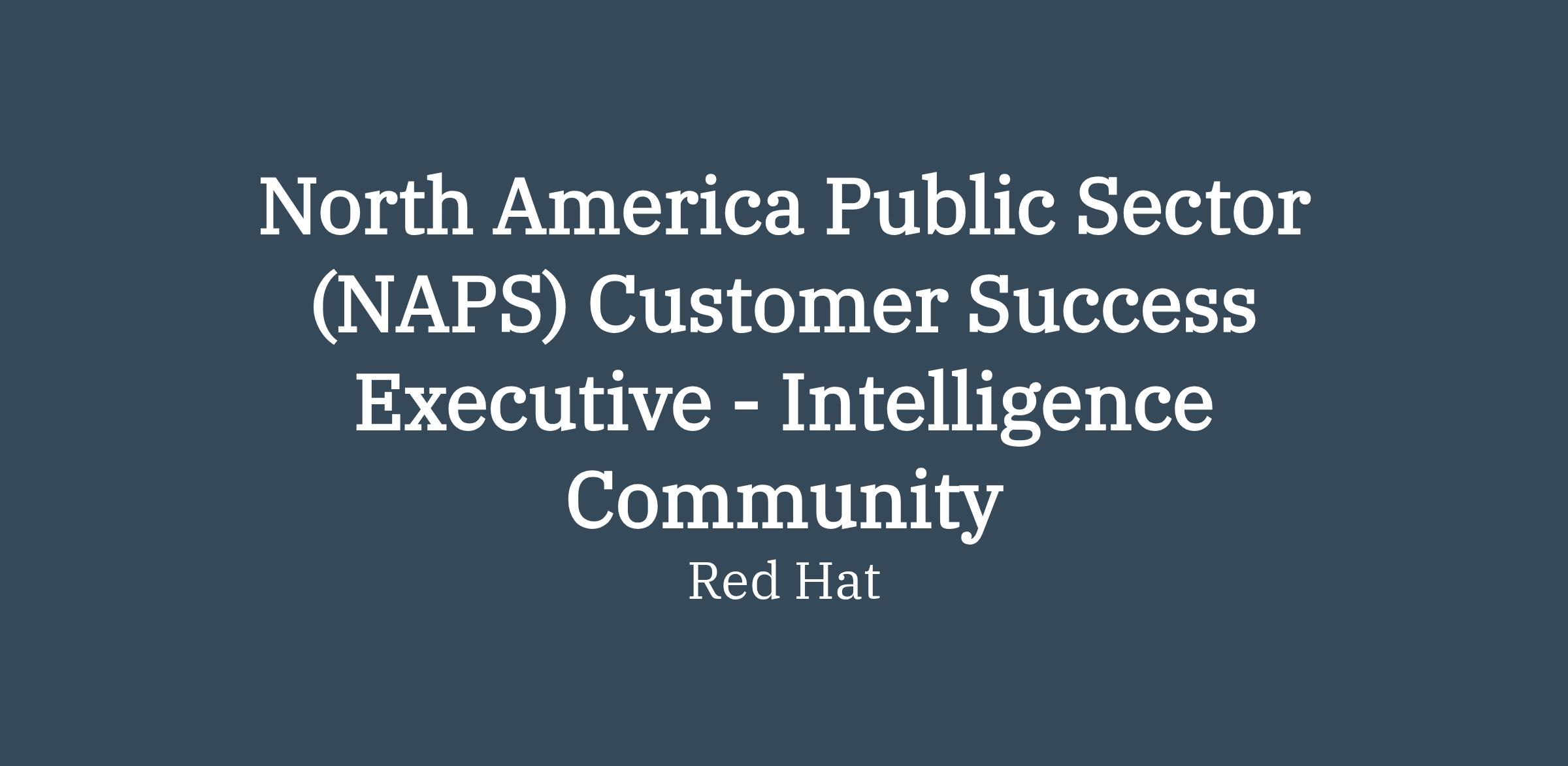 North America Public Sector (NAPS) Customer Success Executive - Intelligence Community