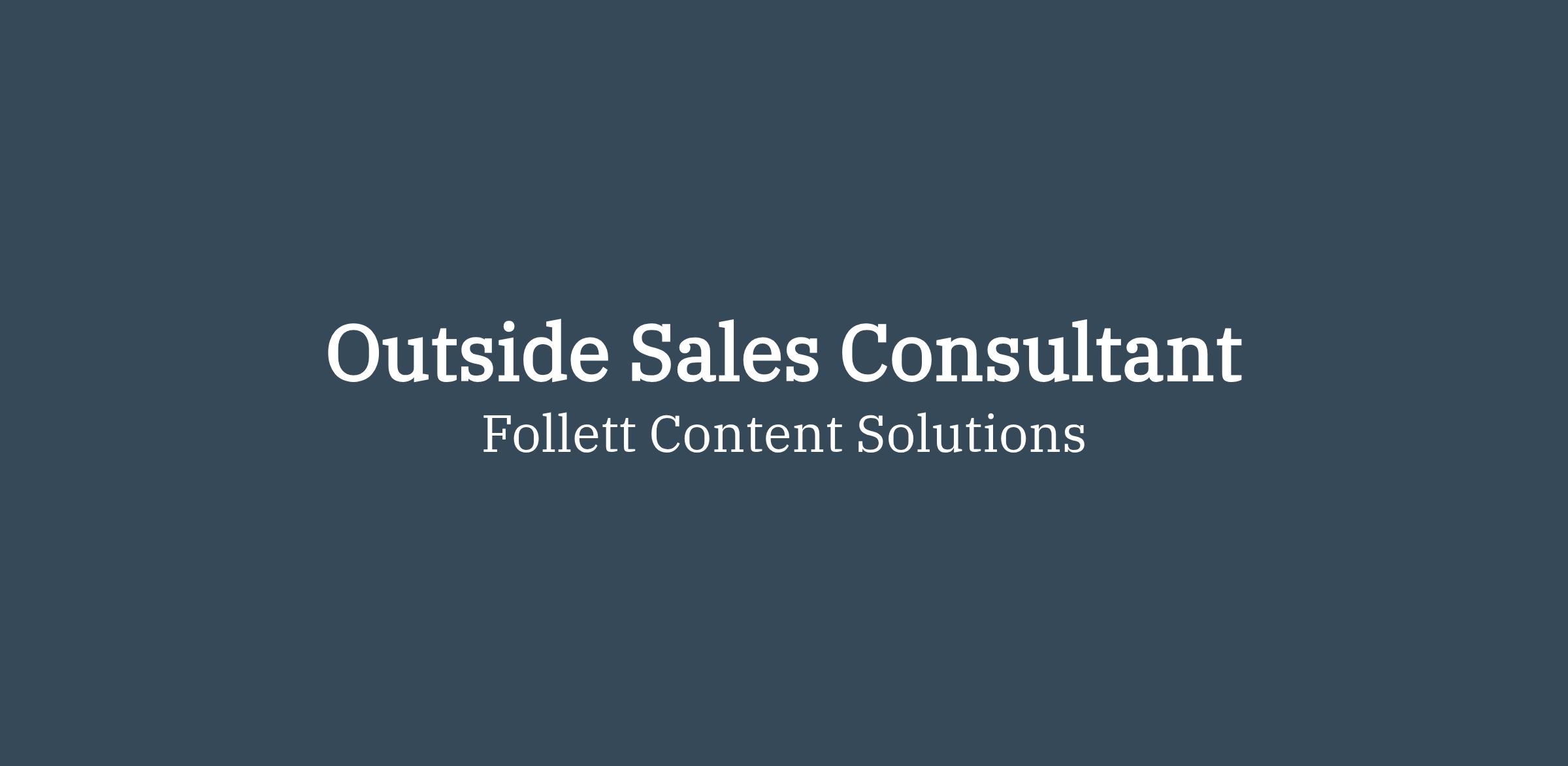 - The Outside Sales Consultant will perform responsibilities to contact current and prospective school districts and sites to support selling the full portfolio of Follett content library and classroom, books, early childhood materials, digital content, technology platforms that support digital, efairs, as well as value added services and products.