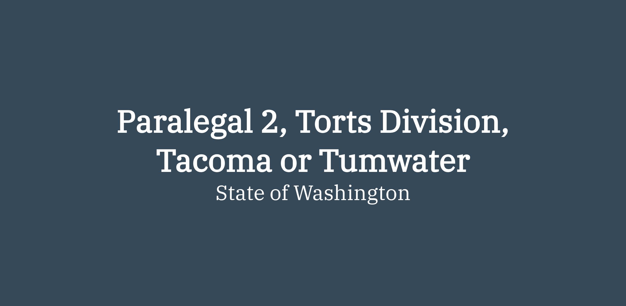 The Attorney General’s Office is recruiting for a permanent full time Paralegal 2 in the Torts Division. This position is located in Tumwater or Tacoma, Washington, and is represented by the Washington Federation of State Employees (WFSE).