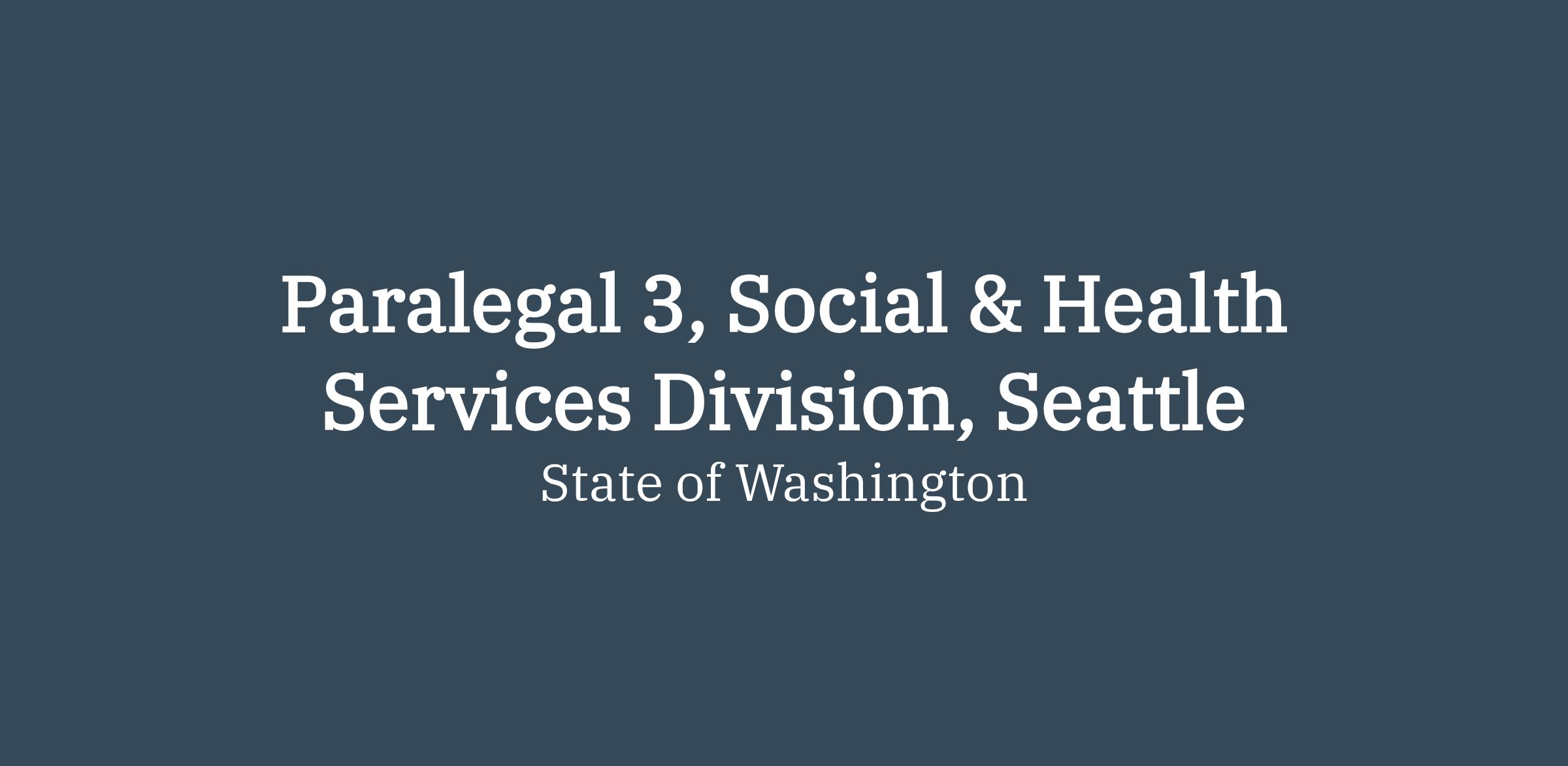 The Attorney General’s Office is recruiting for a permanent full time Paralegal 3 in the Social & Health Services Division. This position is located in Seattle, Washington, and is represented by the Washington Federation of State Employees (WFSE).