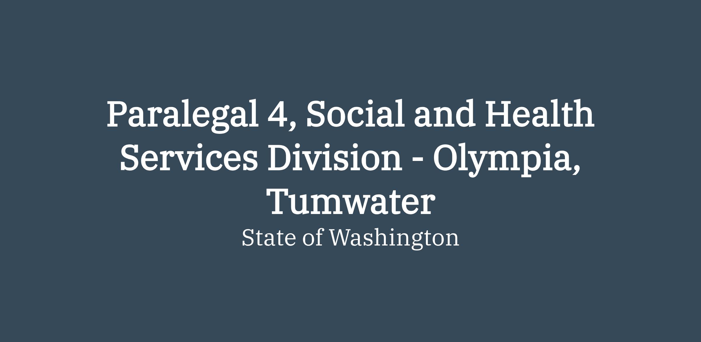 The Attorney General’s Office is recruiting for a permanent full time Paralegal 4 in the Social and Health Services Division Olympia. This position is located in Tumwater, Washington, and is represented by the Washington Federation of State Employees (WFSE).