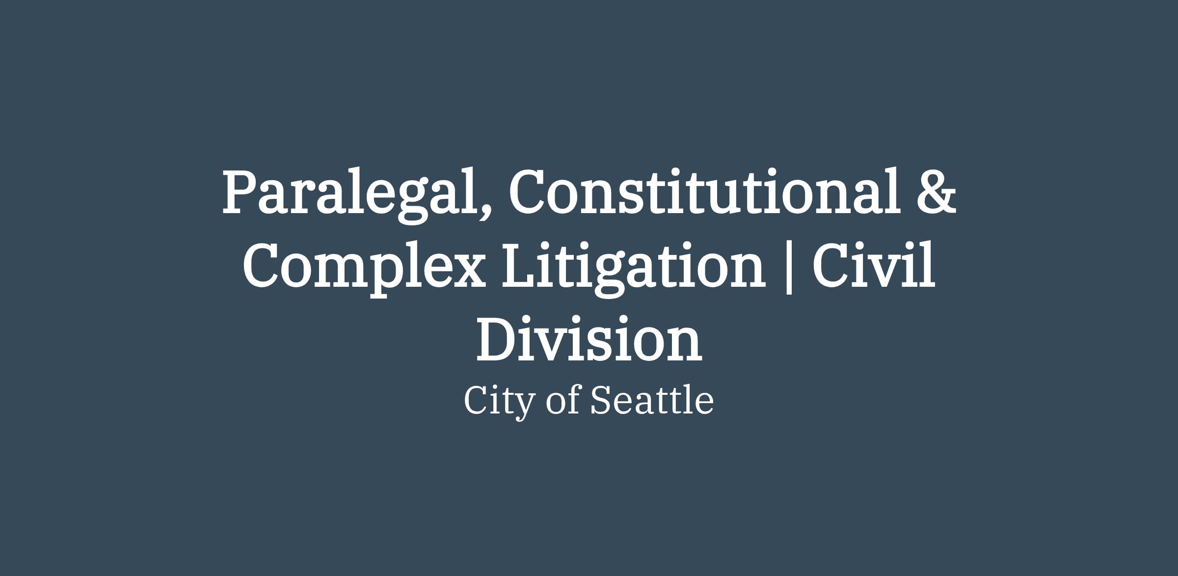 The Seattle City Attorney’s Office is seeking a litigation paralegal to work in the Constitutional and Complex Litigation Section. The position will provide litigation support to the attorneys in the section at both the trial and appellate phases in City, State, and Federal court actions.