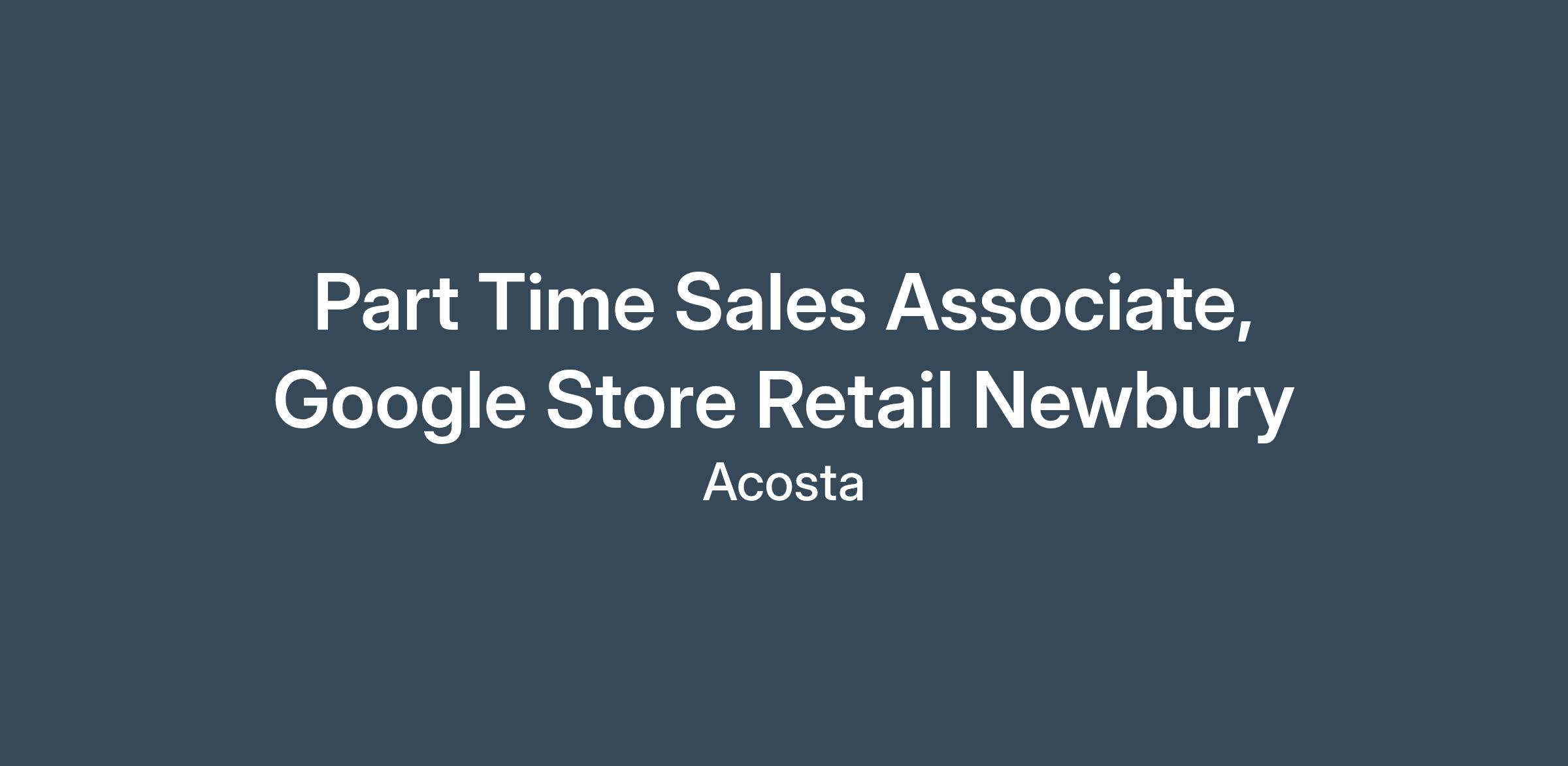 DescriptionThe Part-time Google Sales Associate will be expected to have a deep knowledge of the brands products and services in order to effectively empower the consumer using device and product discovery. They will be goal-driven and create a radically helpful consumer experience that promotes excitement around the brands ownership, by being the experts of the brands devices, software, and third party products and services in the brands Better Together ecosystem.