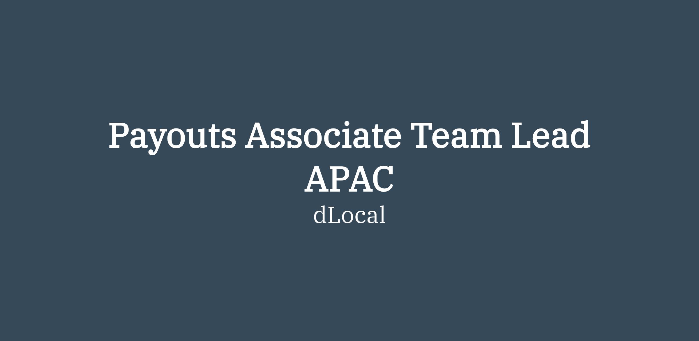 We are looking for a Payouts Associate Team Lead based in APAC to join our Payouts Operations team. The ideal candidate will join a team that takes full responsibility for carrying on the processing flows in different countries, iterating with different banks or partners, and looking to improve their performance.