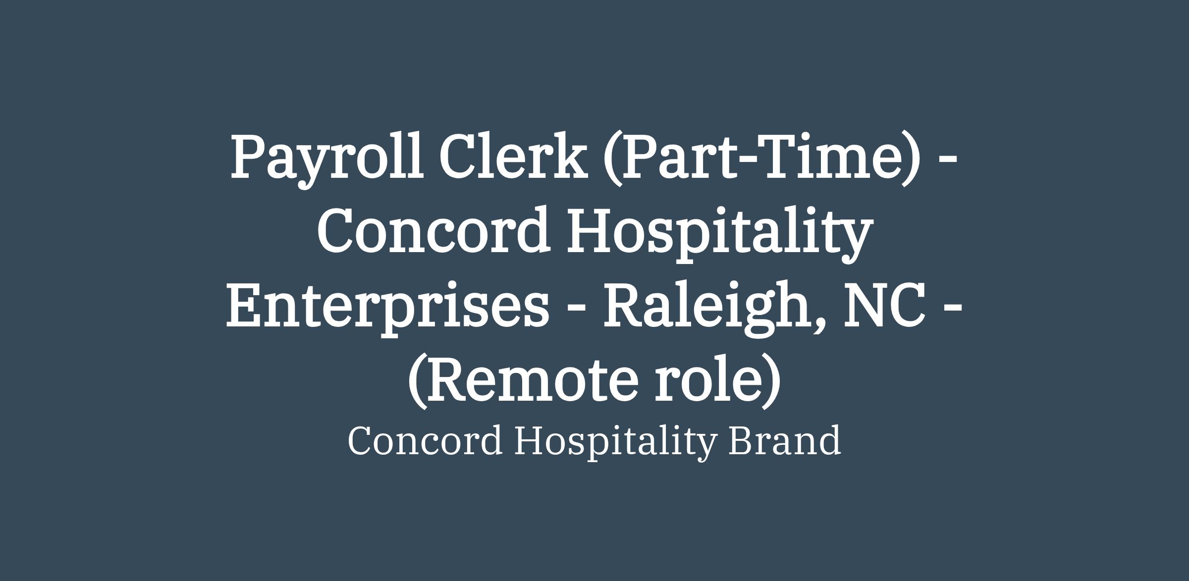 Concord Hospitality is currently seeking a part-time payroll clerk to join the team. This is a fully remote role.