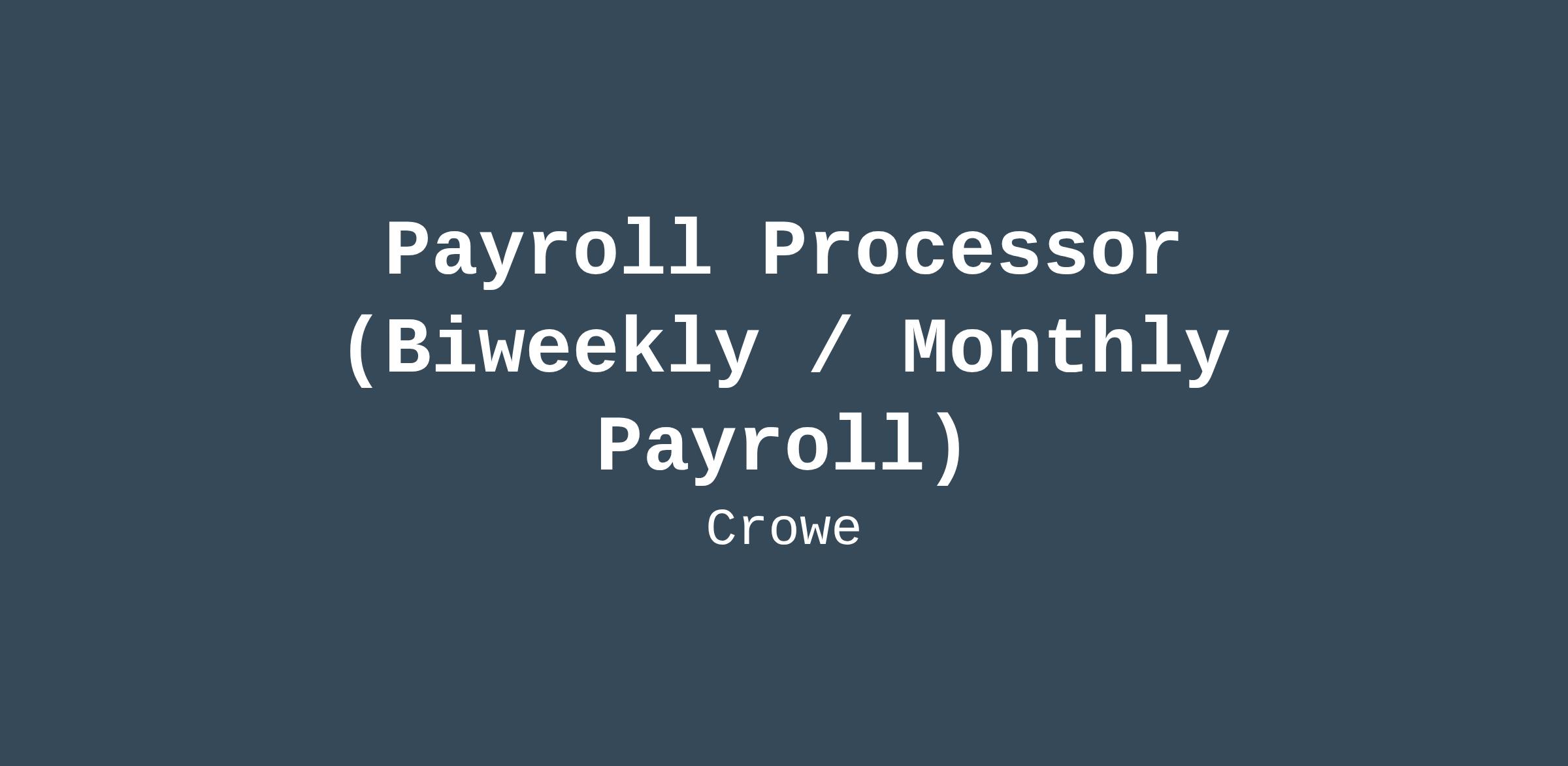Crowe is a global consulting and accounting firm that delivers smart decisions and lasting value through deep industry expertise and innovative solutions. We are committed to a people-first culture built on collaboration, integrity, and continuous improvement. We are seeking an experienced Payroll Processor to support our biweekly and monthly payroll operations for salaried employees and variable compensation programs.