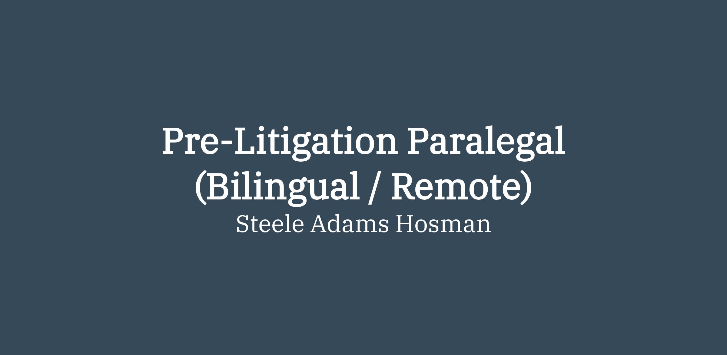Bilingual Pre-Litigation Paralegal — Personal Injury Location: Cottonwood Heights, UT | Hybrid About the Firm Steele Adams Hosman is a client‑focused personal injury practice dedicated to obtaining justice for individuals who have been harmed by the negligence of others. We pride ourselves on compassionate advocacy, meticulous case preparation, and trial excellence. At Steele Adams Hosman, we live by six core values. A successful Litigation Paralegal will embody each of the following: