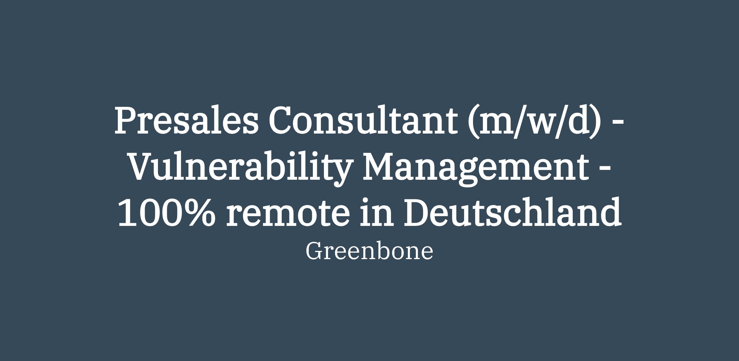 Presales Consultant (m/w/d) - Vulnerability Management - 100% remote in Deutschland